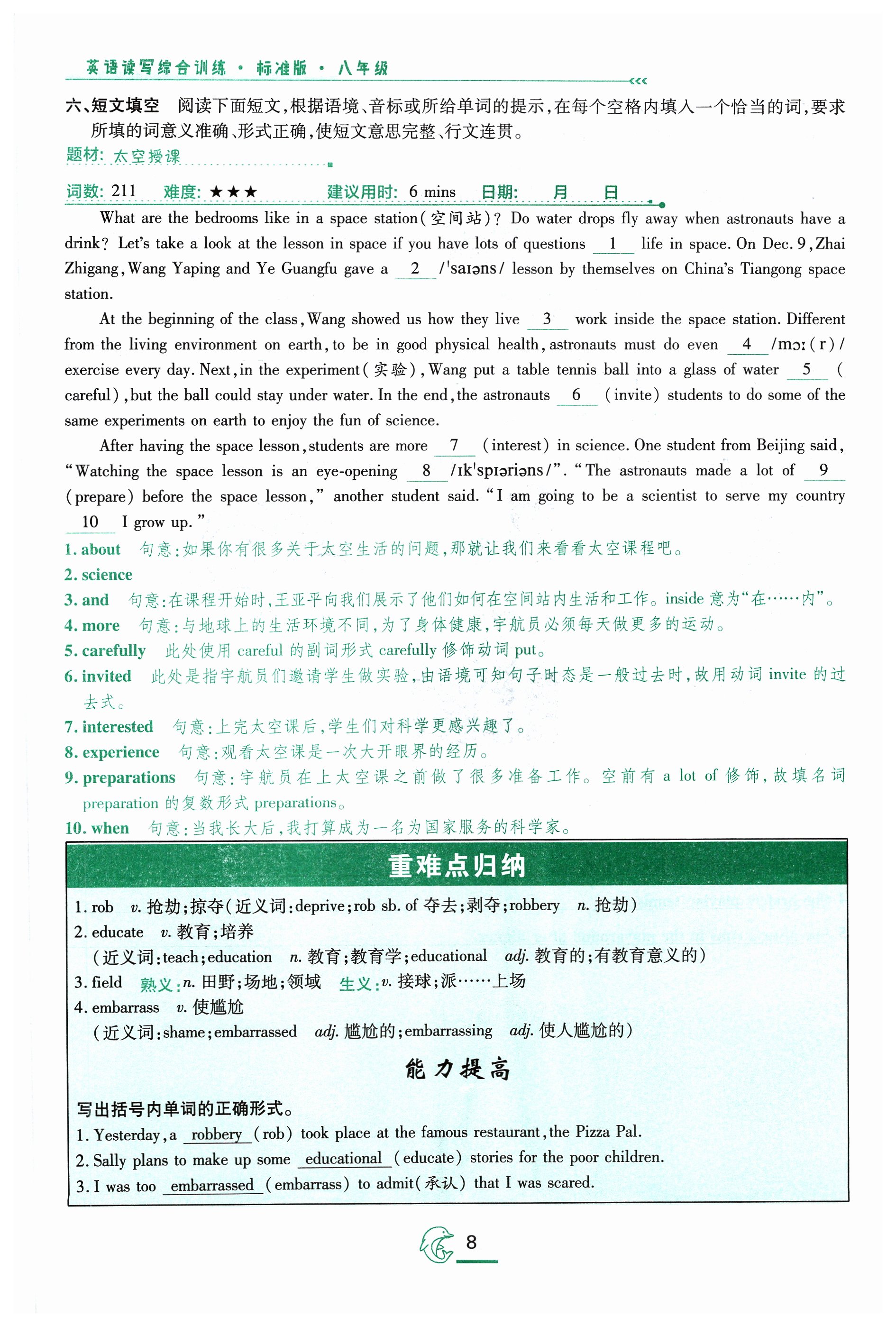 注:目前有些书本章节名称可能整理的还不是很完善,但都是按照顺序排列的,请同学们按照顺序仔细查找。练习册 2023年激情英语读写综合训练八年级英语福建专版 答案主要是用来给同学们做完题方便对答案用的,请勿直接抄袭。