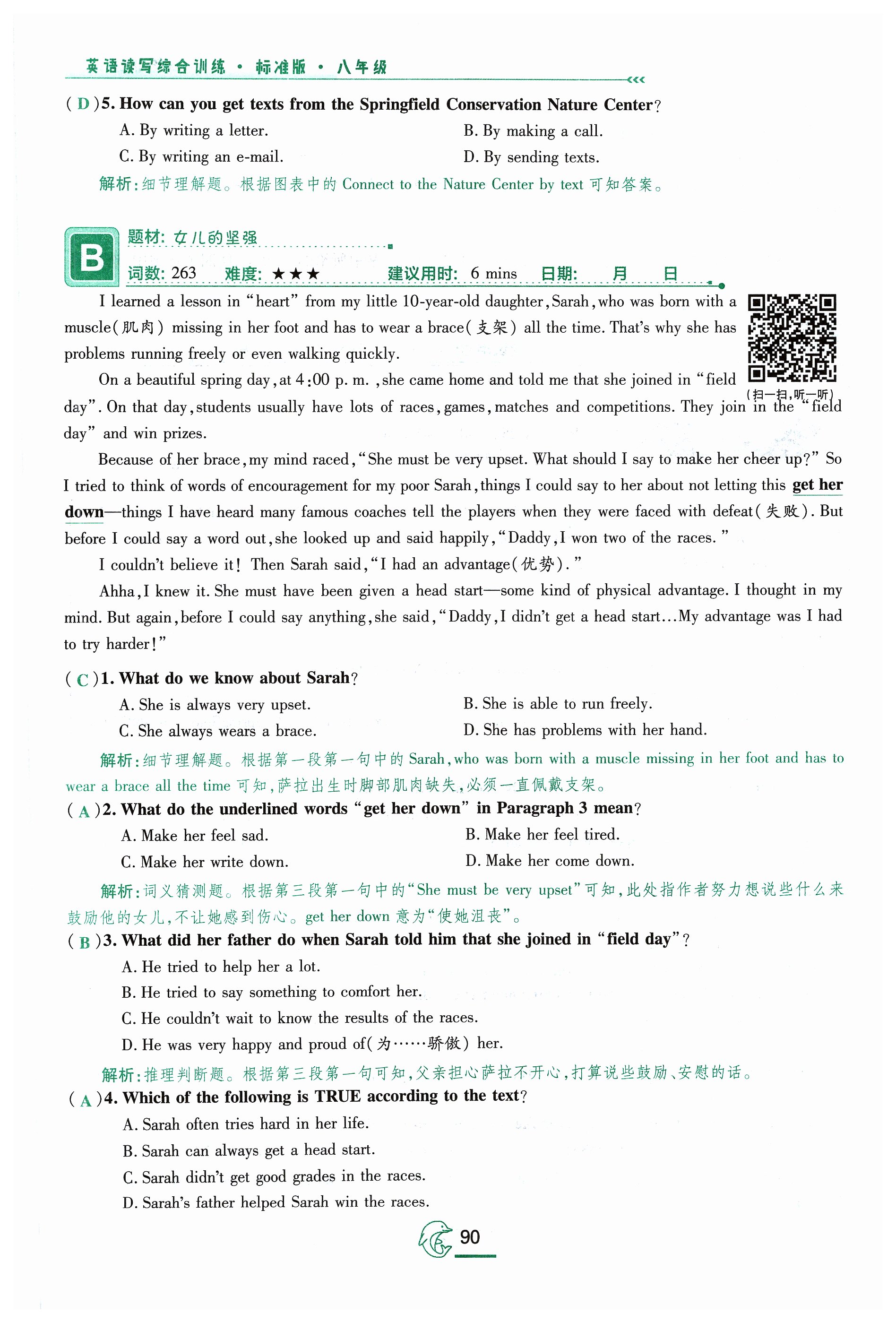 注:目前有些书本章节名称可能整理的还不是很完善,但都是按照顺序排列的,请同学们按照顺序仔细查找。练习册 2023年激情英语读写综合训练八年级英语福建专版 答案主要是用来给同学们做完题方便对答案用的,请勿直接抄袭。