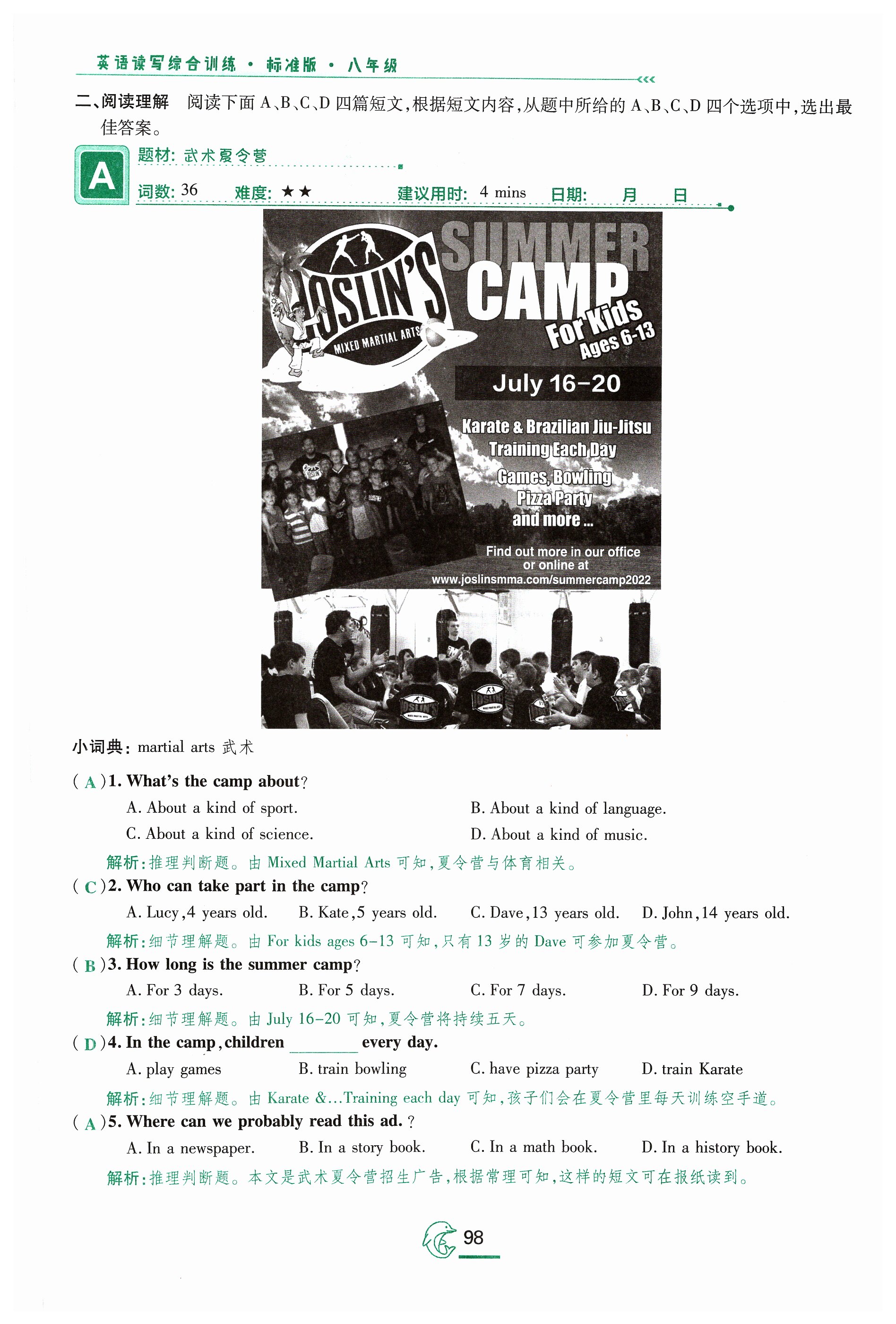 注:目前有些书本章节名称可能整理的还不是很完善,但都是按照顺序排列的,请同学们按照顺序仔细查找。练习册 2023年激情英语读写综合训练八年级英语福建专版 答案主要是用来给同学们做完题方便对答案用的,请勿直接抄袭。