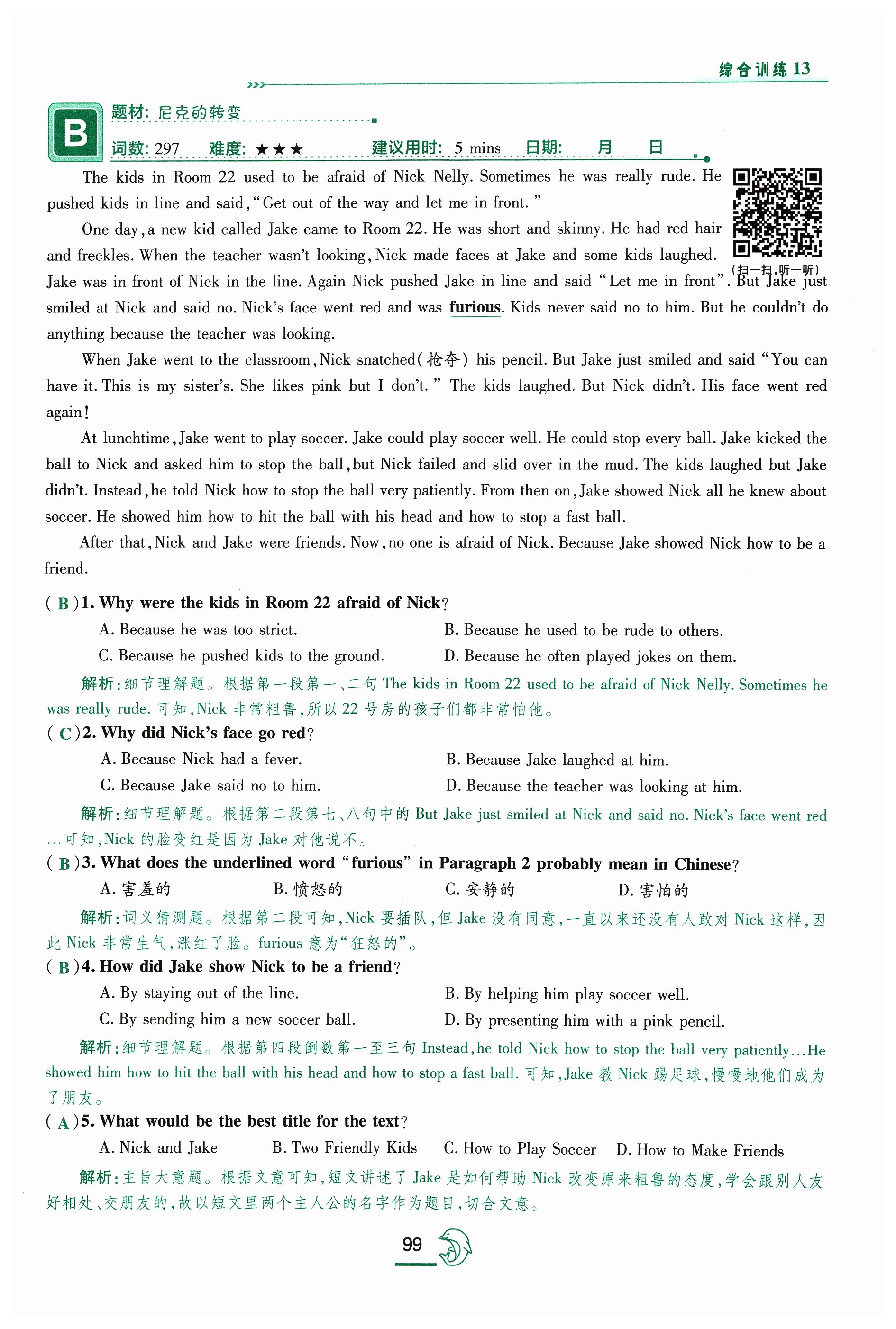 注:目前有些书本章节名称可能整理的还不是很完善,但都是按照顺序排列的,请同学们按照顺序仔细查找。练习册 2023年激情英语读写综合训练八年级英语福建专版 答案主要是用来给同学们做完题方便对答案用的,请勿直接抄袭。