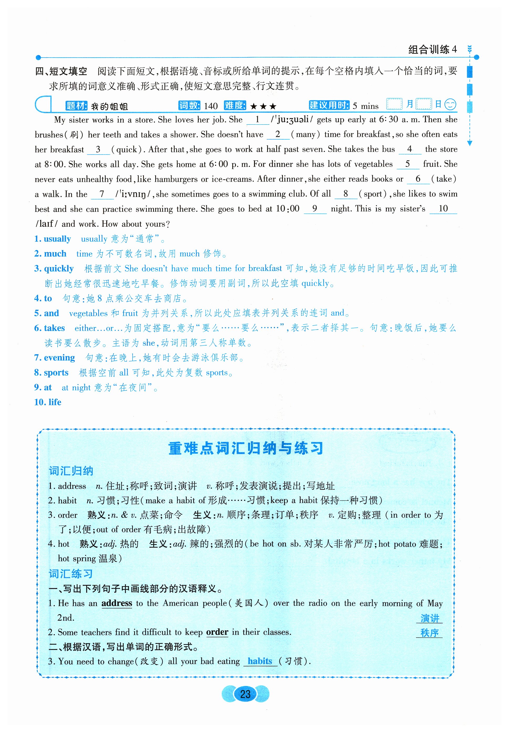 注:目前有些书本章节名称可能整理的还不是很完善,但都是按照顺序排列的,请同学们按照顺序仔细查找。练习册 2023年激情英语阅读组合训练七年级英语福建专版 答案主要是用来给同学们做完题方便对答案用的,请勿直接抄袭。