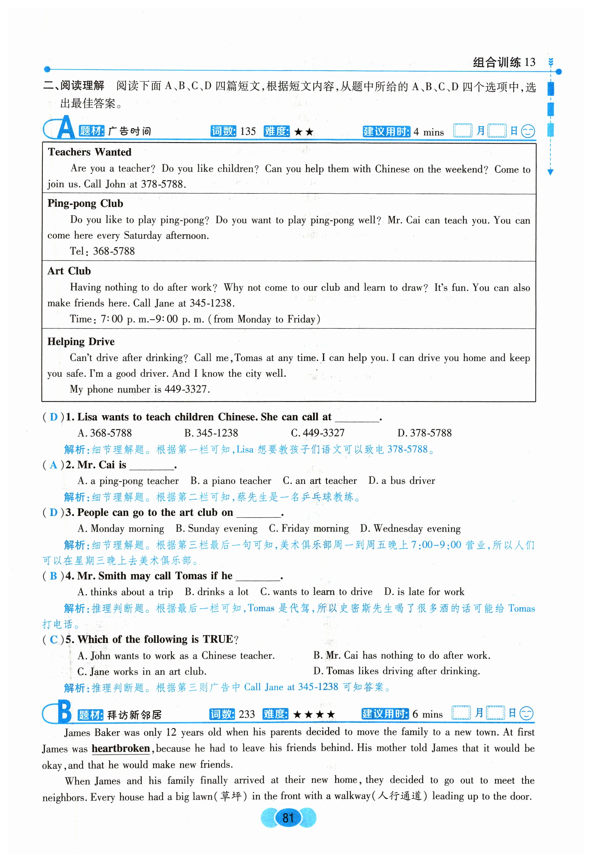 注:目前有些书本章节名称可能整理的还不是很完善,但都是按照顺序排列的,请同学们按照顺序仔细查找。练习册 2023年激情英语阅读组合训练七年级英语福建专版 答案主要是用来给同学们做完题方便对答案用的,请勿直接抄袭。