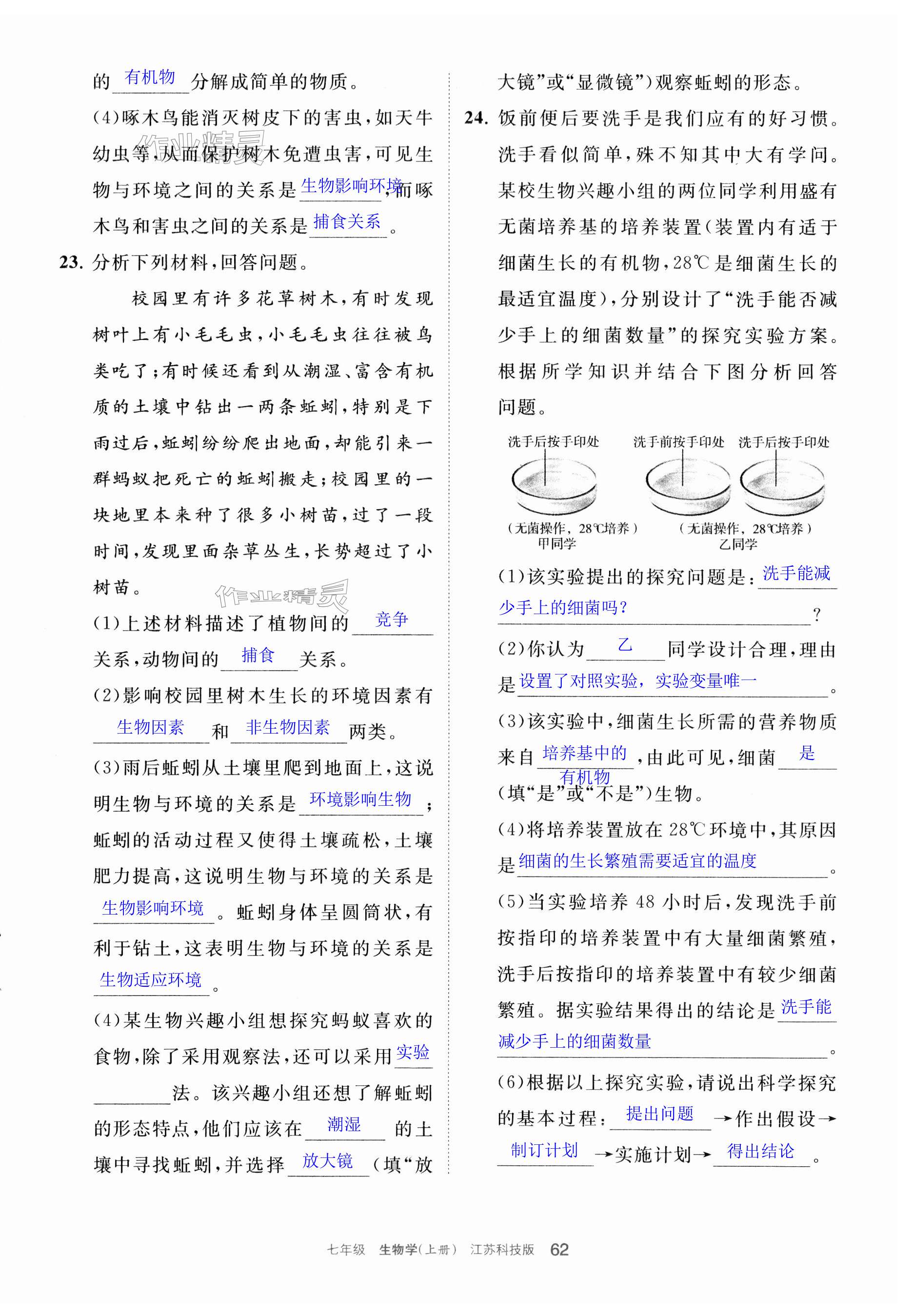 注:目前有些书本章节名称可能整理的还不是很完善,但都是按照顺序排列的,请同学们按照顺序仔细查找。练习册 2023年学习之友七年级生物上册苏科版 答案主要是用来给同学们做完题方便对答案用的,请勿直接抄袭。