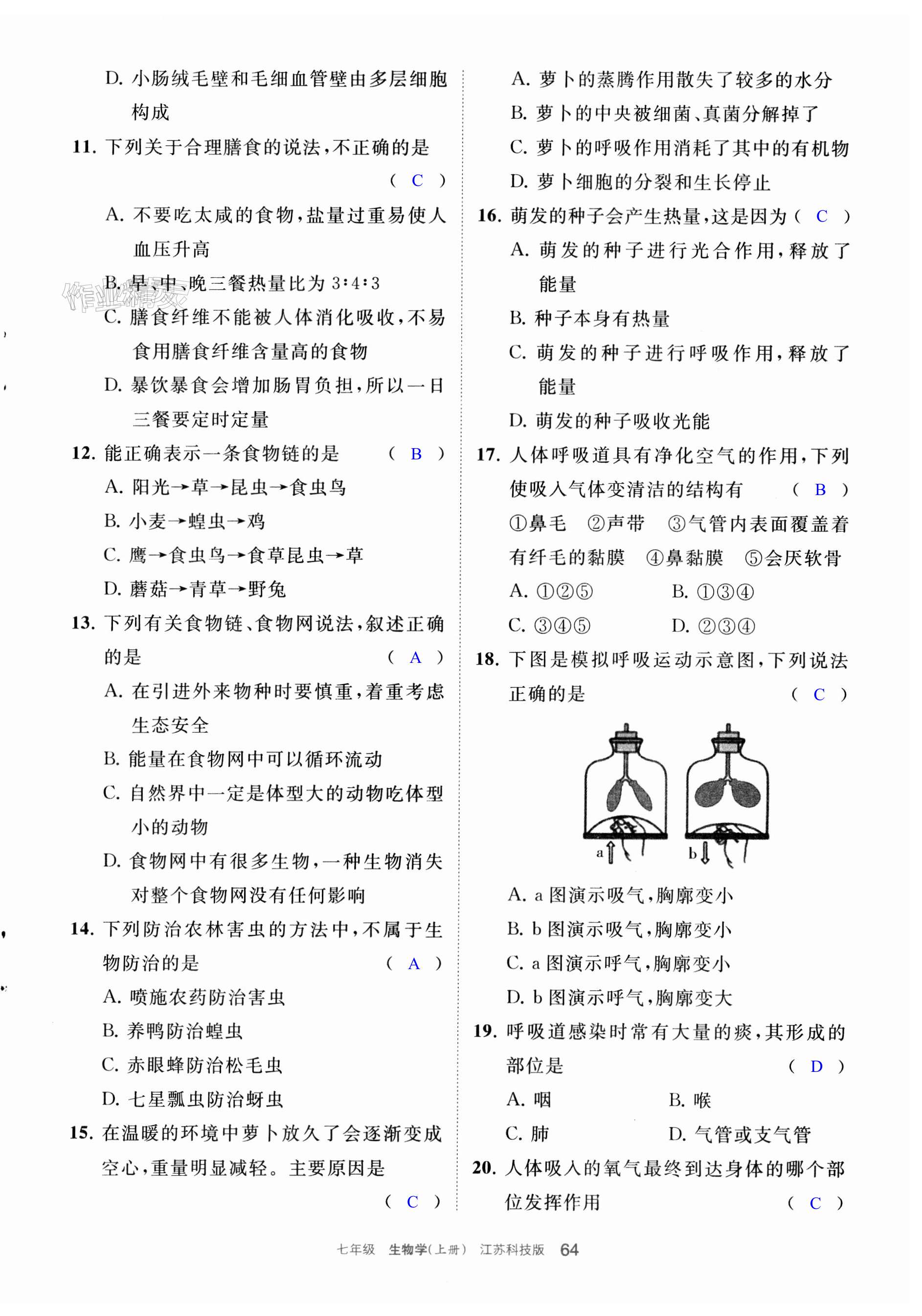 注:目前有些书本章节名称可能整理的还不是很完善,但都是按照顺序排列的,请同学们按照顺序仔细查找。练习册 2023年学习之友七年级生物上册苏科版 答案主要是用来给同学们做完题方便对答案用的,请勿直接抄袭。