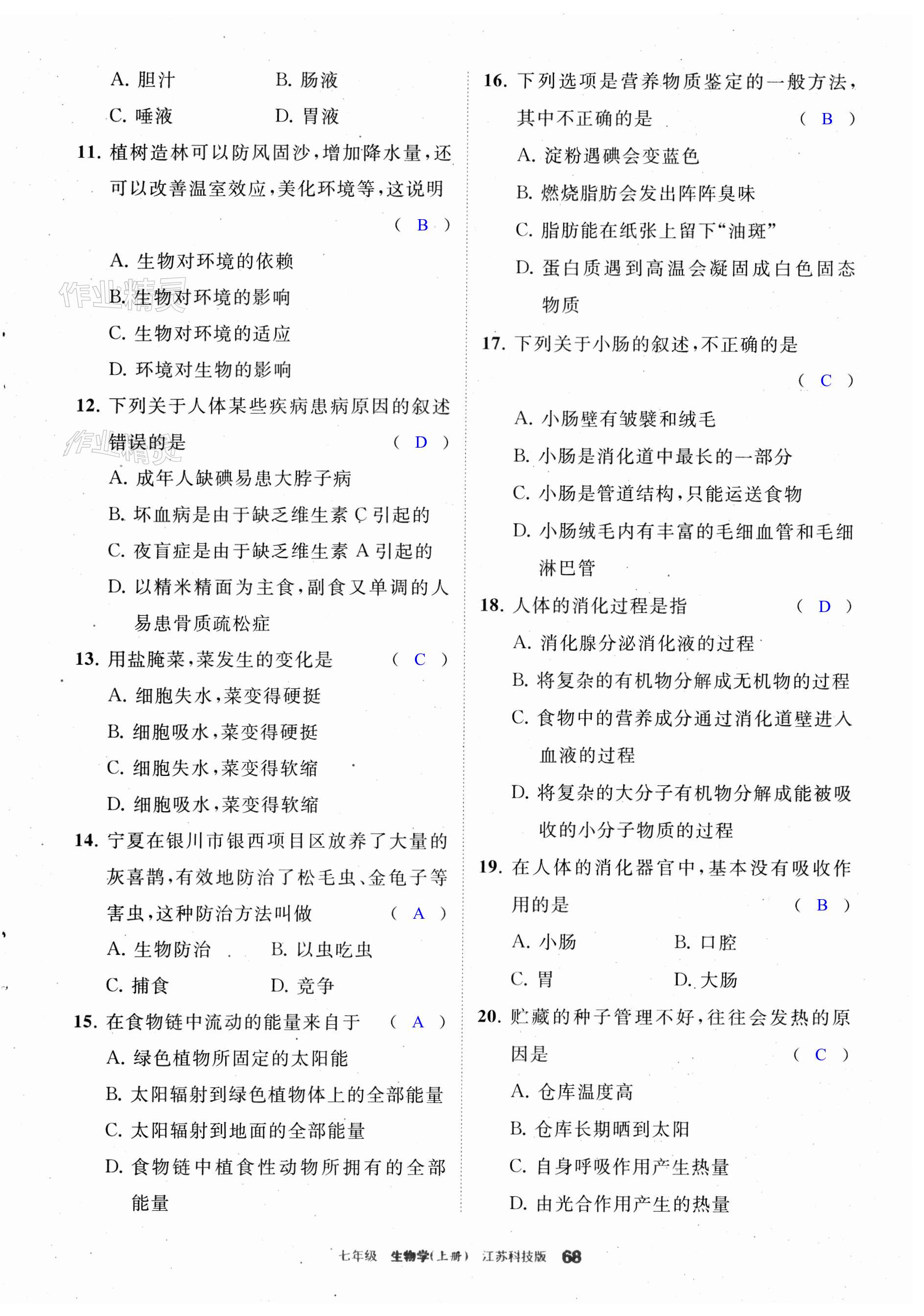 注:目前有些书本章节名称可能整理的还不是很完善,但都是按照顺序排列的,请同学们按照顺序仔细查找。练习册 2023年学习之友七年级生物上册苏科版 答案主要是用来给同学们做完题方便对答案用的,请勿直接抄袭。