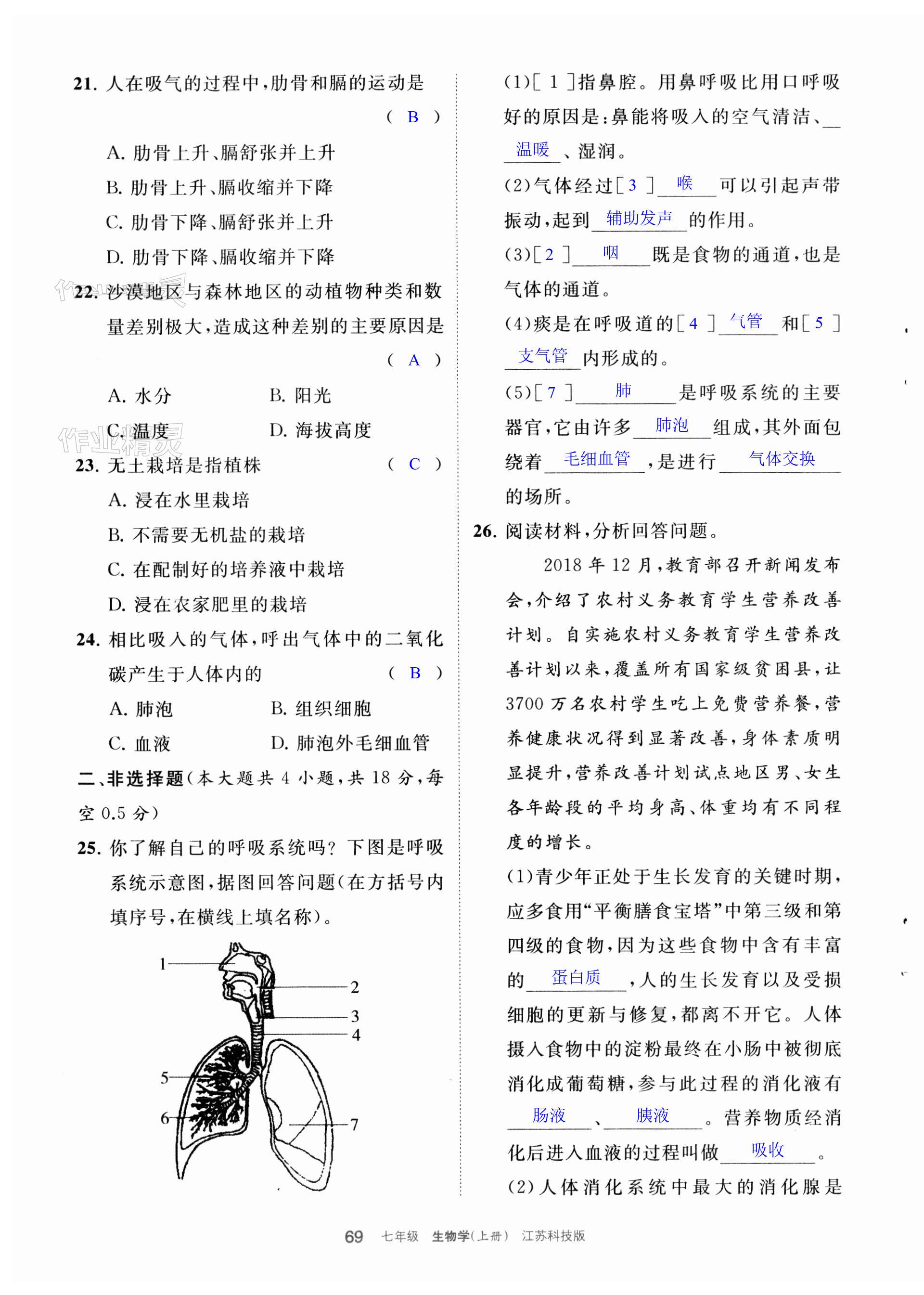 注:目前有些书本章节名称可能整理的还不是很完善,但都是按照顺序排列的,请同学们按照顺序仔细查找。练习册 2023年学习之友七年级生物上册苏科版 答案主要是用来给同学们做完题方便对答案用的,请勿直接抄袭。