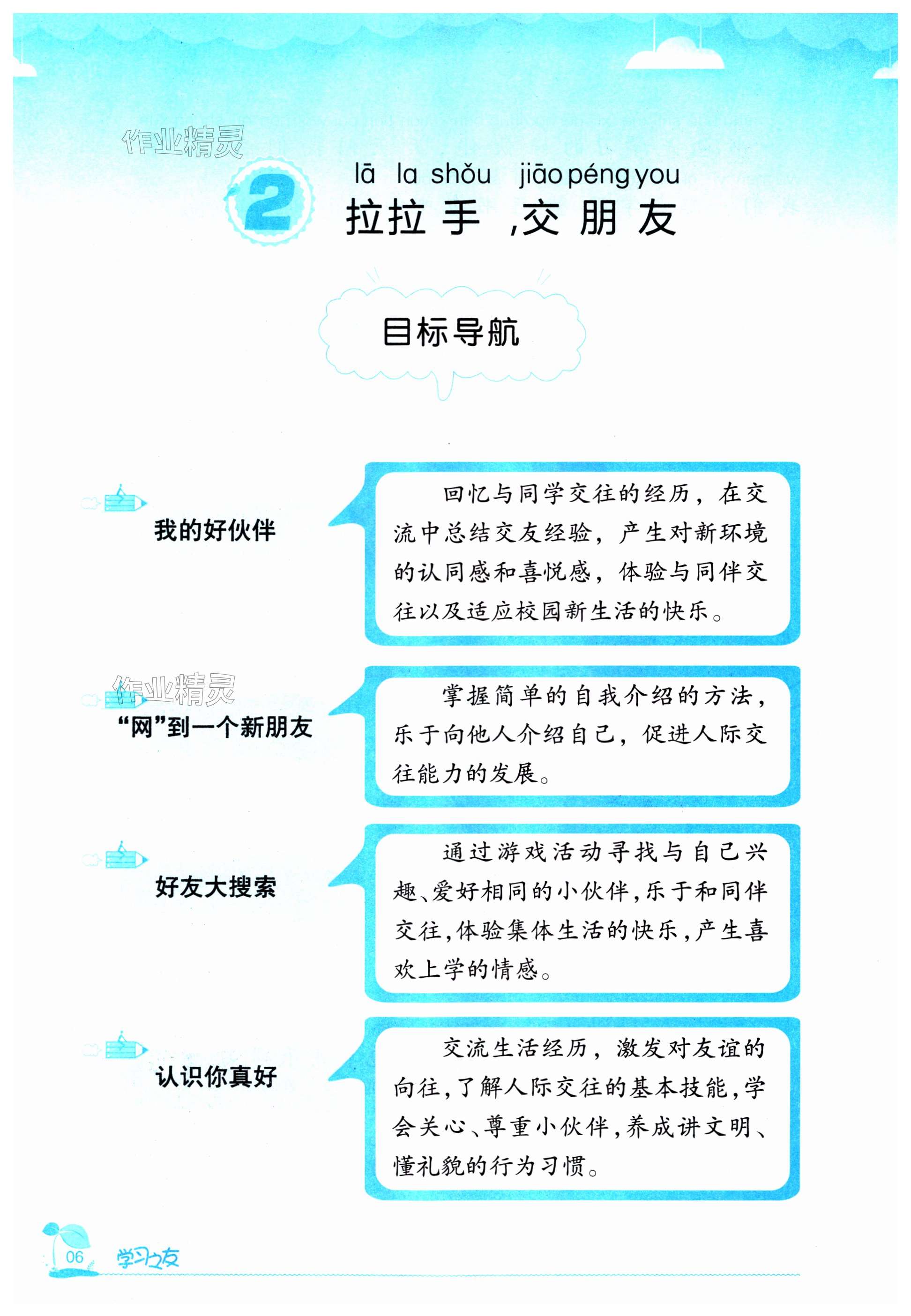 注:目前有些书本章节名称可能整理的还不是很完善,但都是按照顺序排列的,请同学们按照顺序仔细查找。练习册 2023年学习之友一年级道德与法治上册人教版 答案主要是用来给同学们做完题方便对答案用的,请勿直接抄袭。