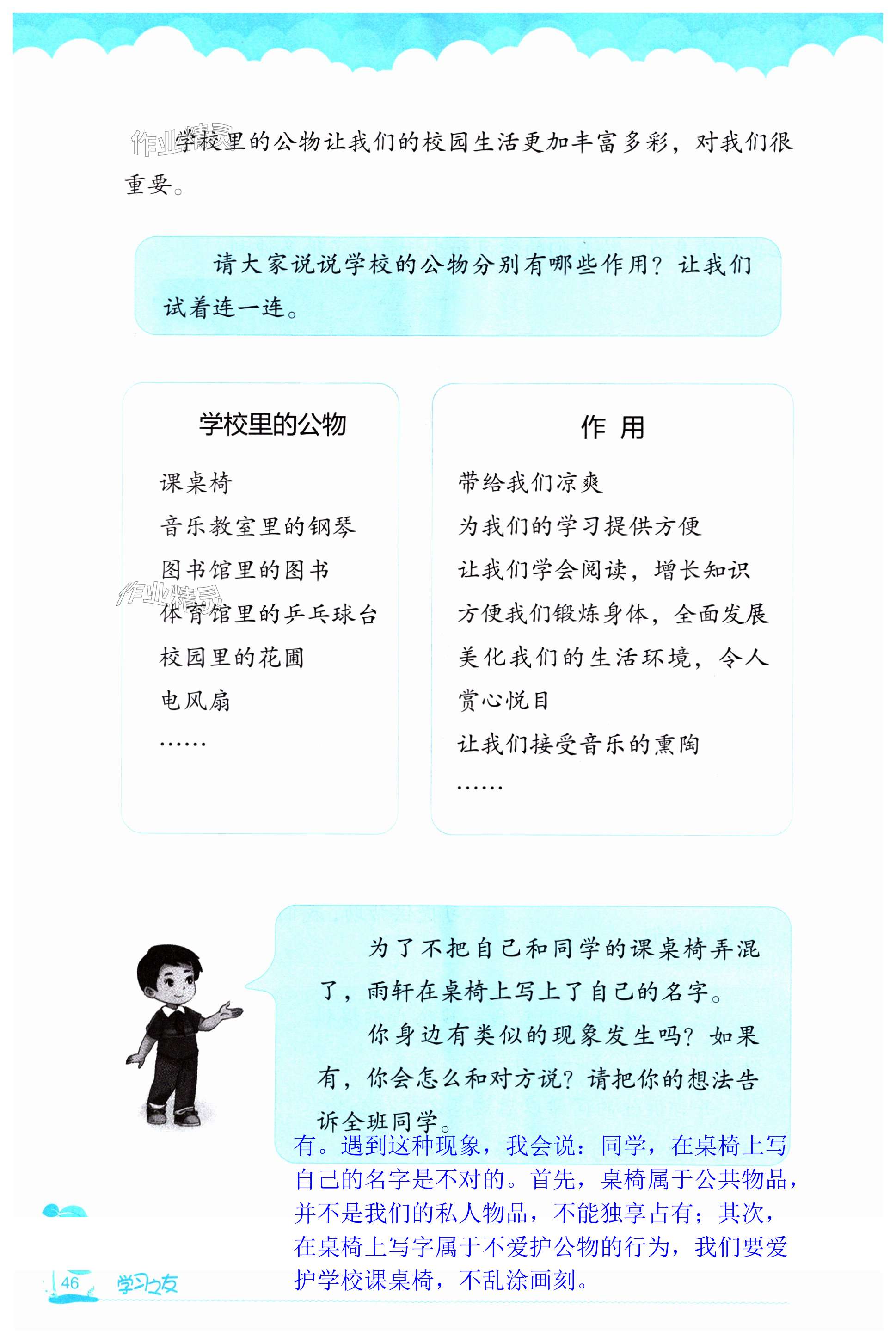 注:目前有些书本章节名称可能整理的还不是很完善,但都是按照顺序排列的,请同学们按照顺序仔细查找。练习册 2023年学习之友二年级道德与法治上册人教版 答案主要是用来给同学们做完题方便对答案用的,请勿直接抄袭。