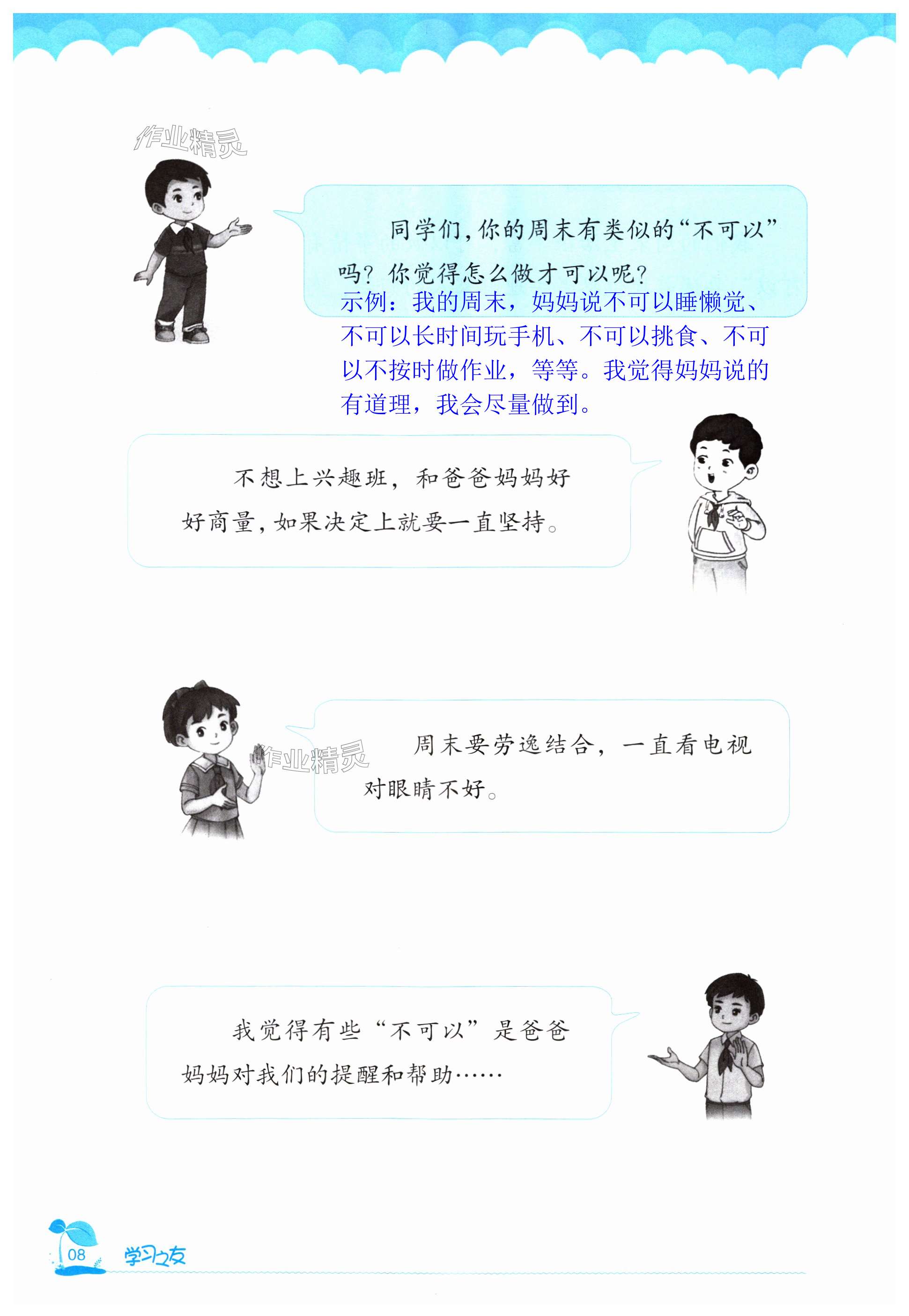 注:目前有些书本章节名称可能整理的还不是很完善,但都是按照顺序排列的,请同学们按照顺序仔细查找。练习册 2023年学习之友二年级道德与法治上册人教版 答案主要是用来给同学们做完题方便对答案用的,请勿直接抄袭。
