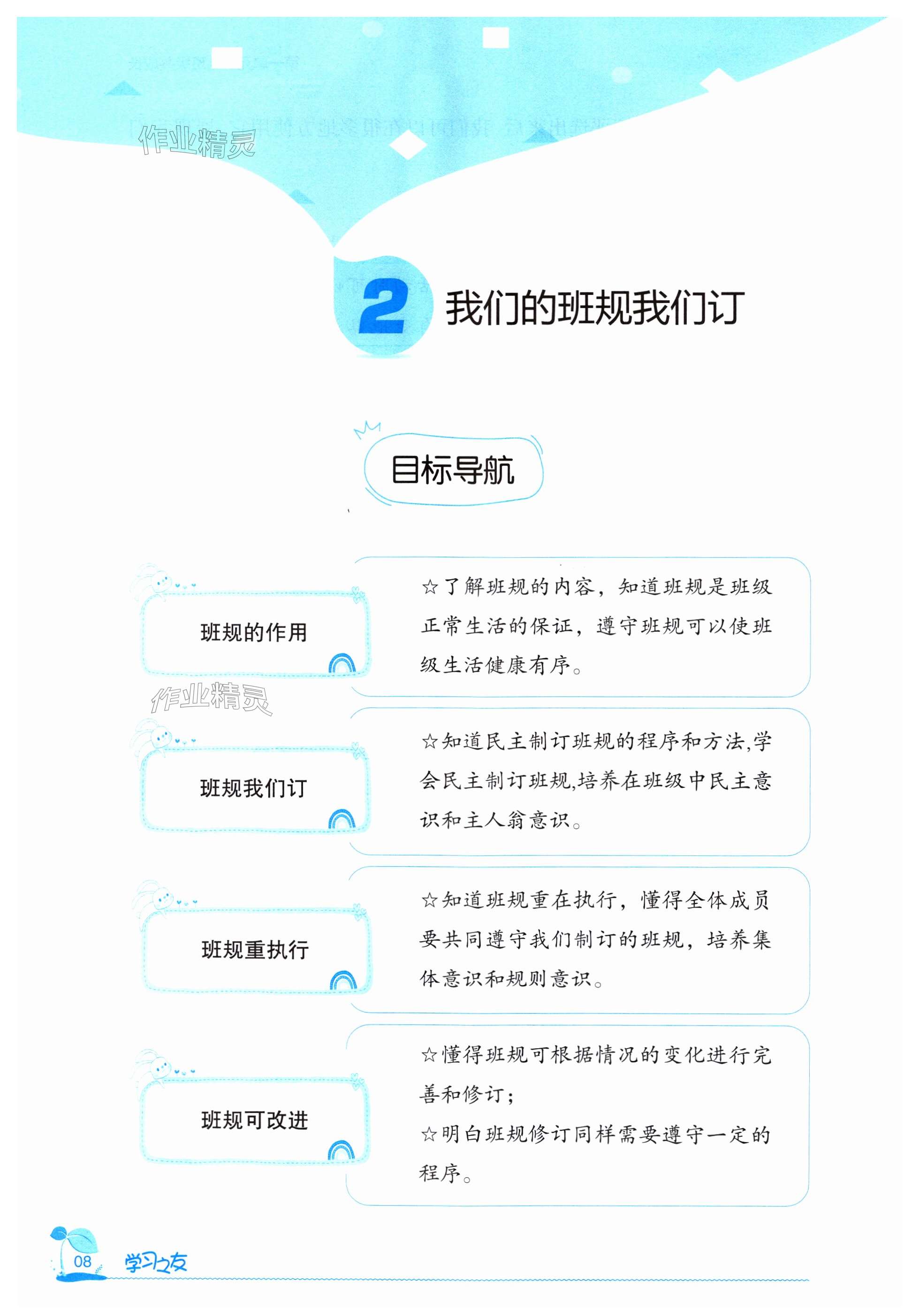 注:目前有些书本章节名称可能整理的还不是很完善,但都是按照顺序排列的,请同学们按照顺序仔细查找。练习册 2023年学习之友四年级道德与法治上册人教版 答案主要是用来给同学们做完题方便对答案用的,请勿直接抄袭。