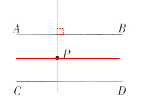 (2)过点P作直线AB的垂线,作直线CD的平行线。
