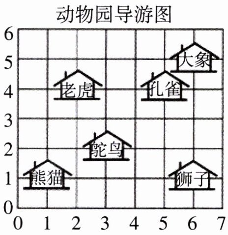 (4)从狮子馆出发,先向右走1格,再向上走5格,就到达长颈鹿馆了,请在图中用●标出长颈鹿馆的位置。