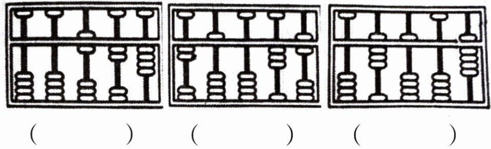 1. 看一看,在括号里填上适当的数。(每个算盘右边第一位是个位)