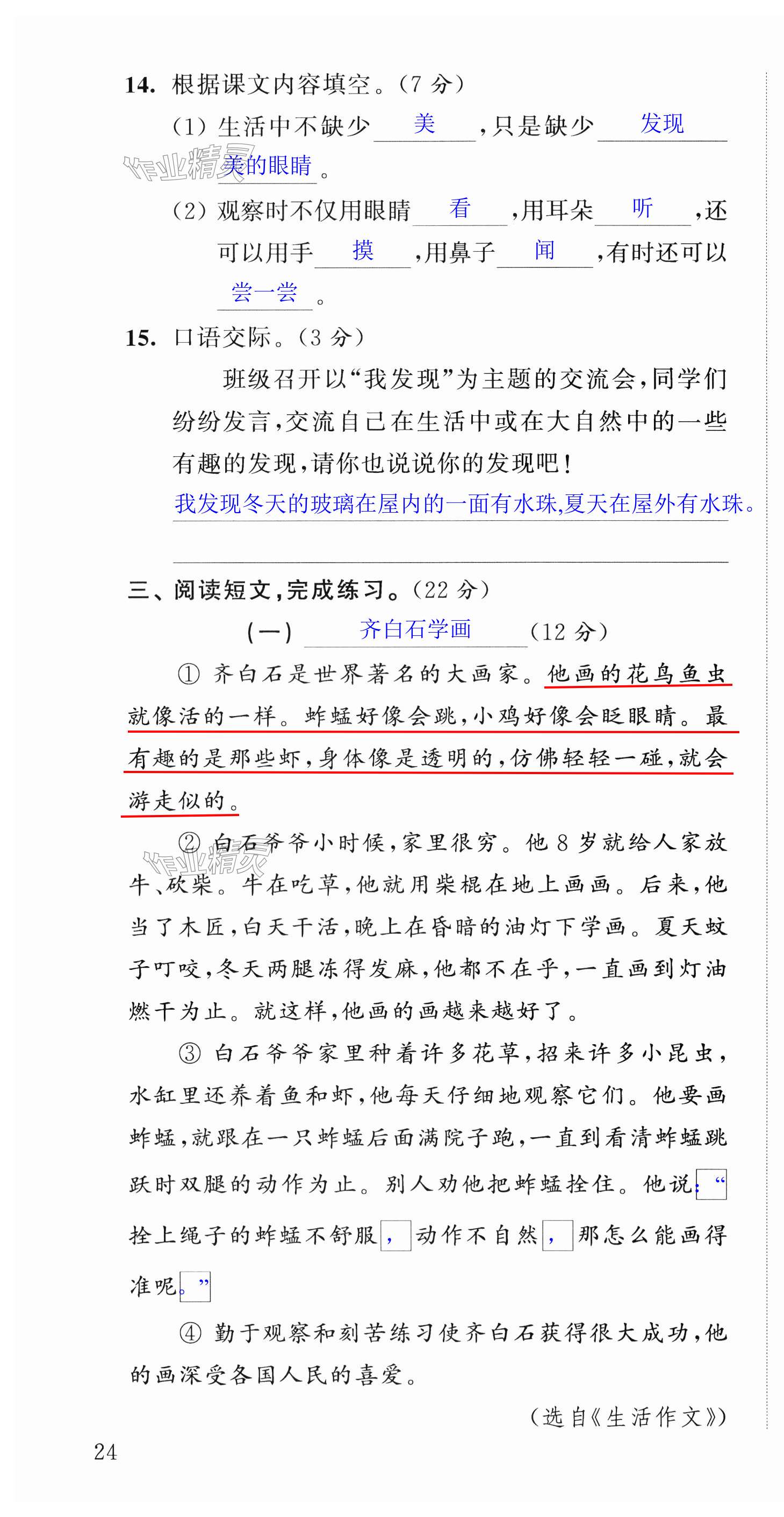 注:目前有些书本章节名称可能整理的还不是很完善,但都是按照顺序排列的,请同学们按照顺序仔细查找。练习册 2023年阳光互动绿色成长空间三年级语文上册人教版 答案主要是用来给同学们做完题方便对答案用的,请勿直接抄袭。
