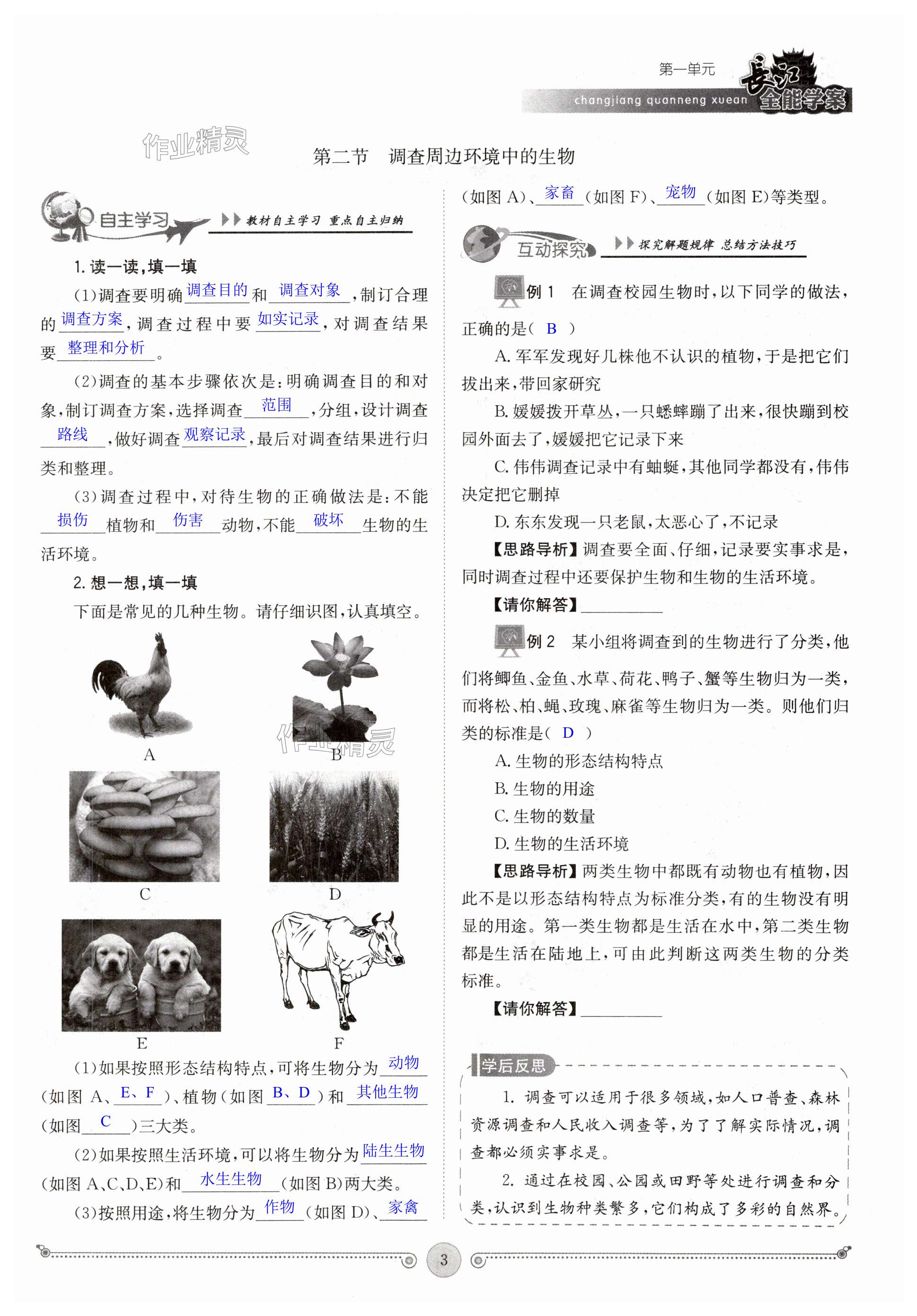 注:目前有些书本章节名称可能整理的还不是很完善,但都是按照顺序排列的,请同学们按照顺序仔细查找。练习册 2023年长江全能学案同步练习册七年级生物上册人教版 答案主要是用来给同学们做完题方便对答案用的,请勿直接抄袭。