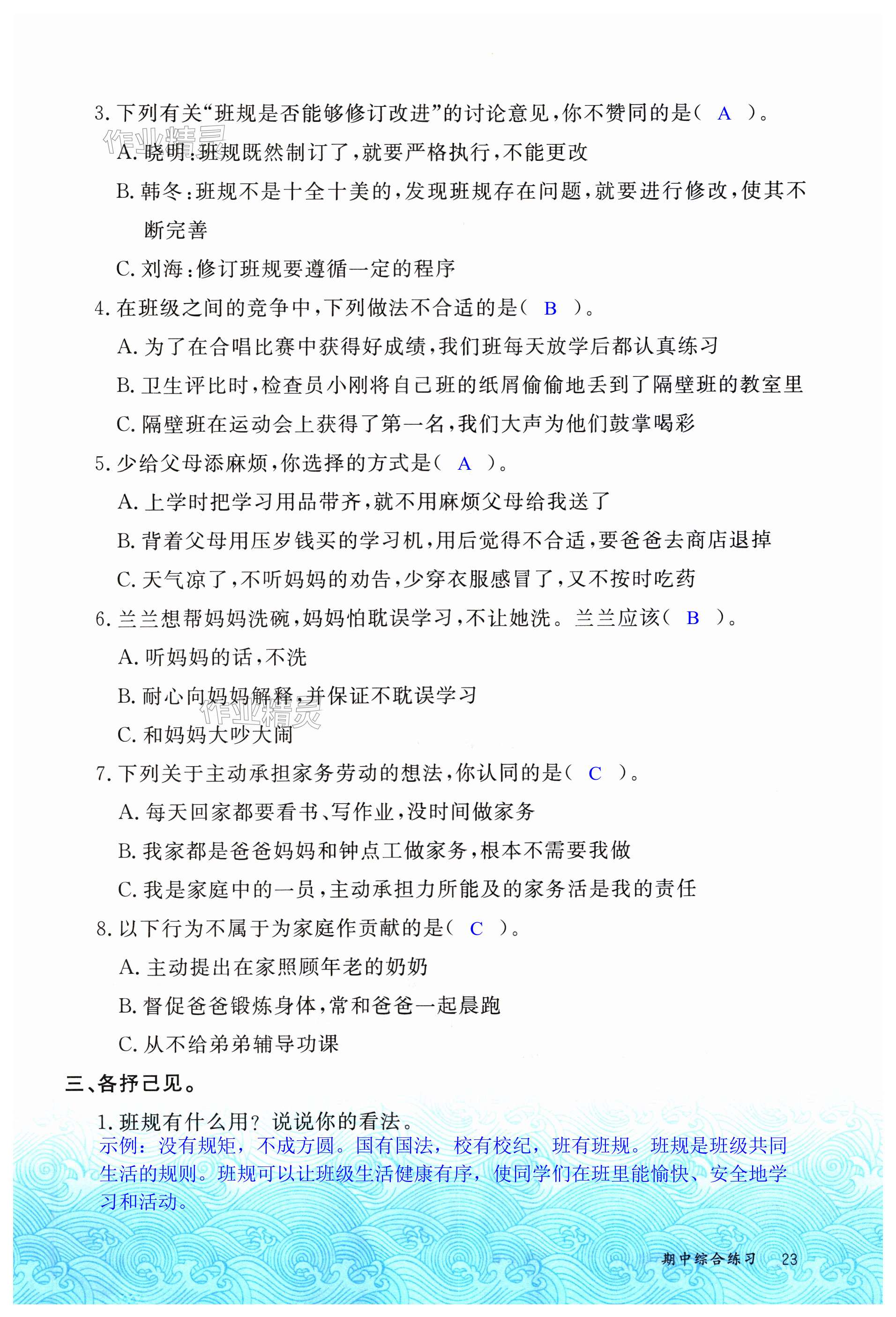 注:目前有些书本章节名称可能整理的还不是很完善,但都是按照顺序排列的,请同学们按照顺序仔细查找。练习册 2023年黄冈作业本武汉大学出版社四年级道德与法治上册人教版 答案主要是用来给同学们做完题方便对答案用的,请勿直接抄袭。