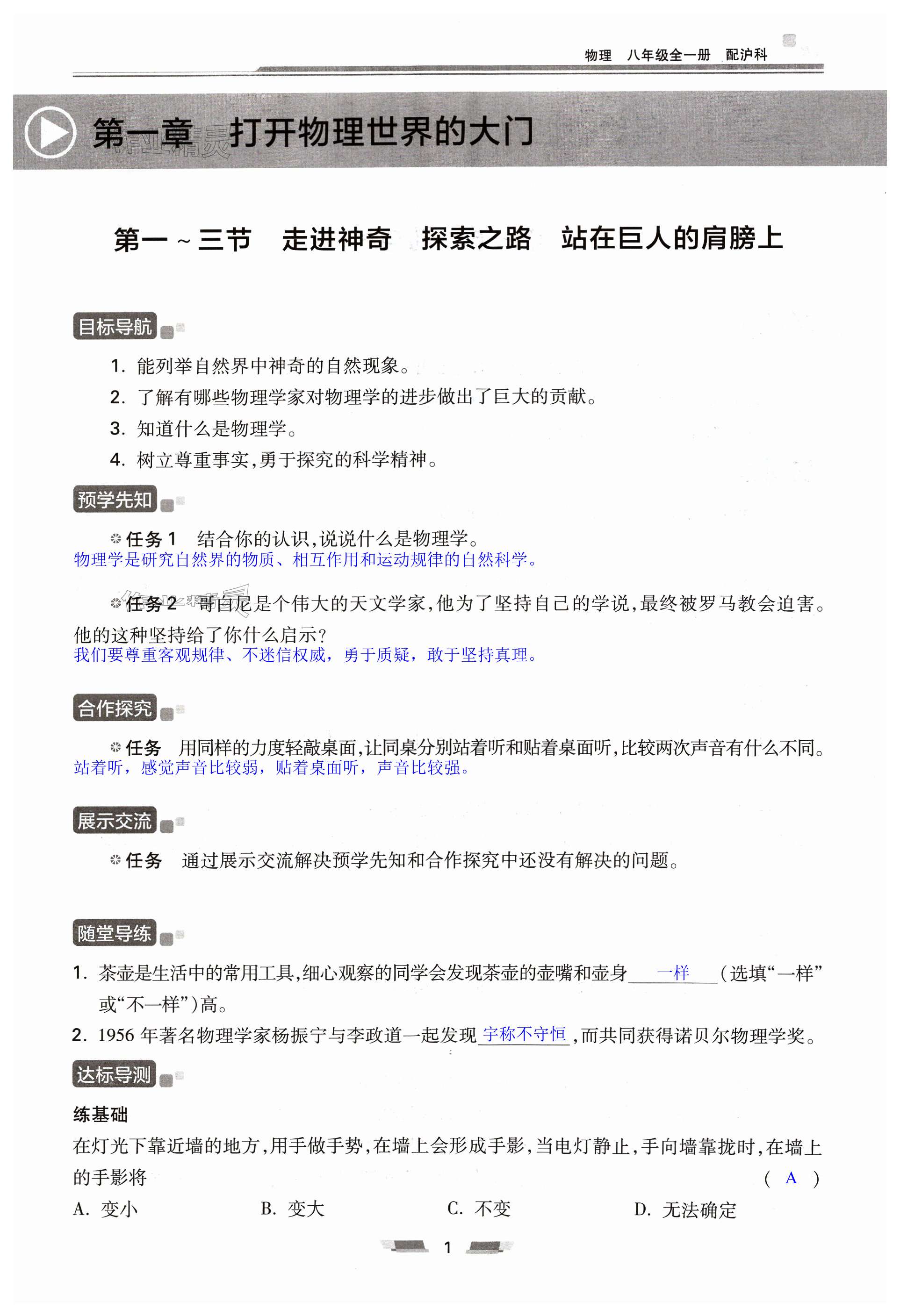 注:目前有些书本章节名称可能整理的还不是很完善,但都是按照顺序排列的,请同学们按照顺序仔细查找。练习册 2023年初中同步练习册八年级物理全一册沪科版湖南少年儿童出版社 答案主要是用来给同学们做完题方便对答案用的,请勿直接抄袭。