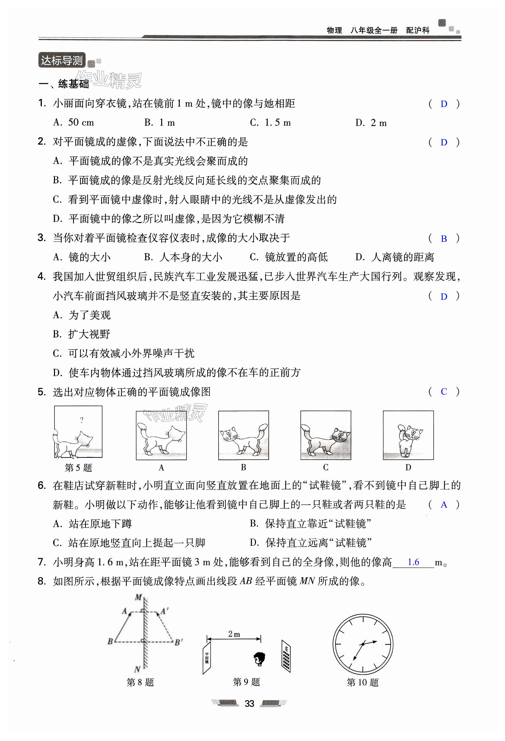 注:目前有些书本章节名称可能整理的还不是很完善,但都是按照顺序排列的,请同学们按照顺序仔细查找。练习册 2023年初中同步练习册八年级物理全一册沪科版湖南少年儿童出版社 答案主要是用来给同学们做完题方便对答案用的,请勿直接抄袭。