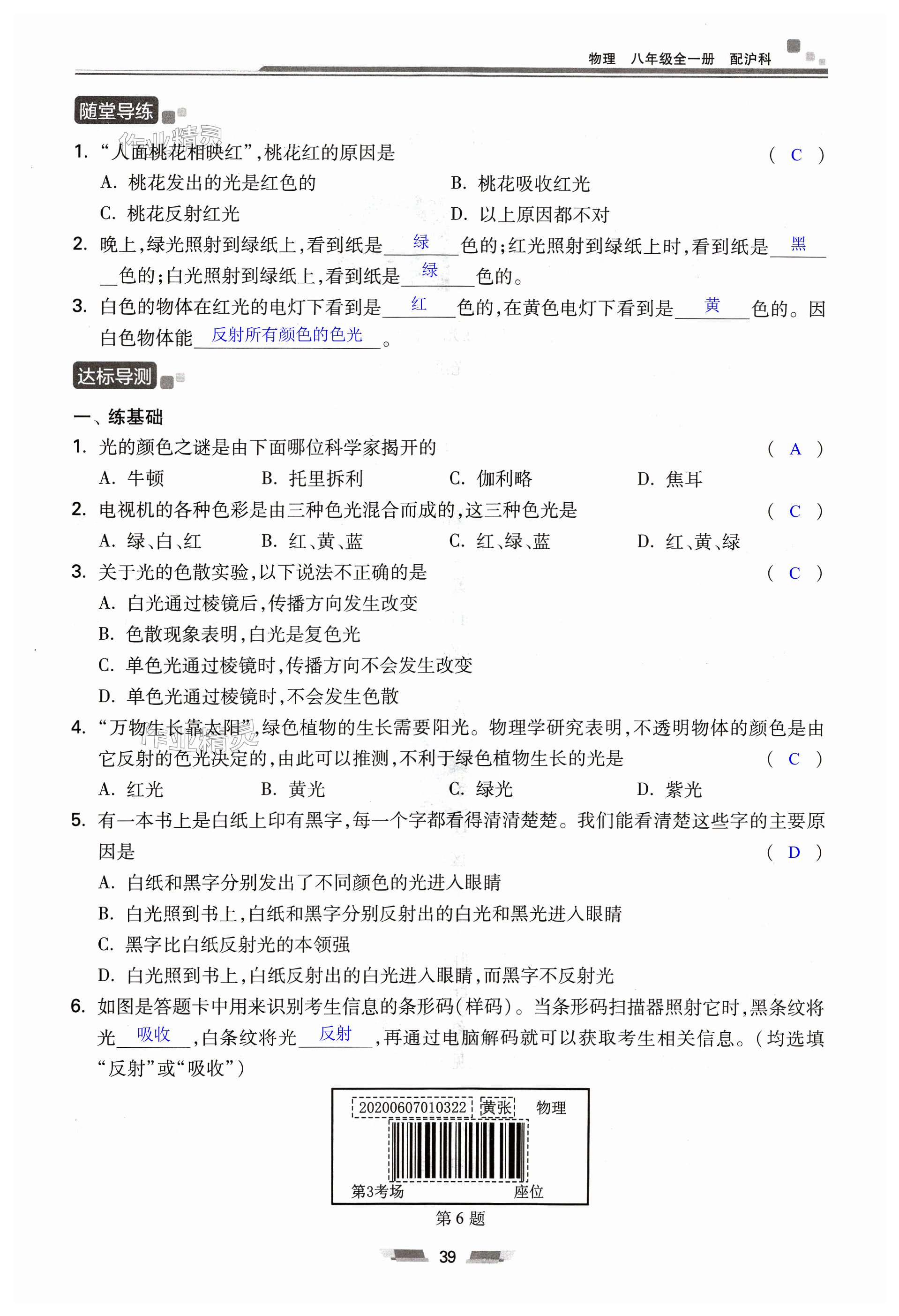 注:目前有些书本章节名称可能整理的还不是很完善,但都是按照顺序排列的,请同学们按照顺序仔细查找。练习册 2023年初中同步练习册八年级物理全一册沪科版湖南少年儿童出版社 答案主要是用来给同学们做完题方便对答案用的,请勿直接抄袭。