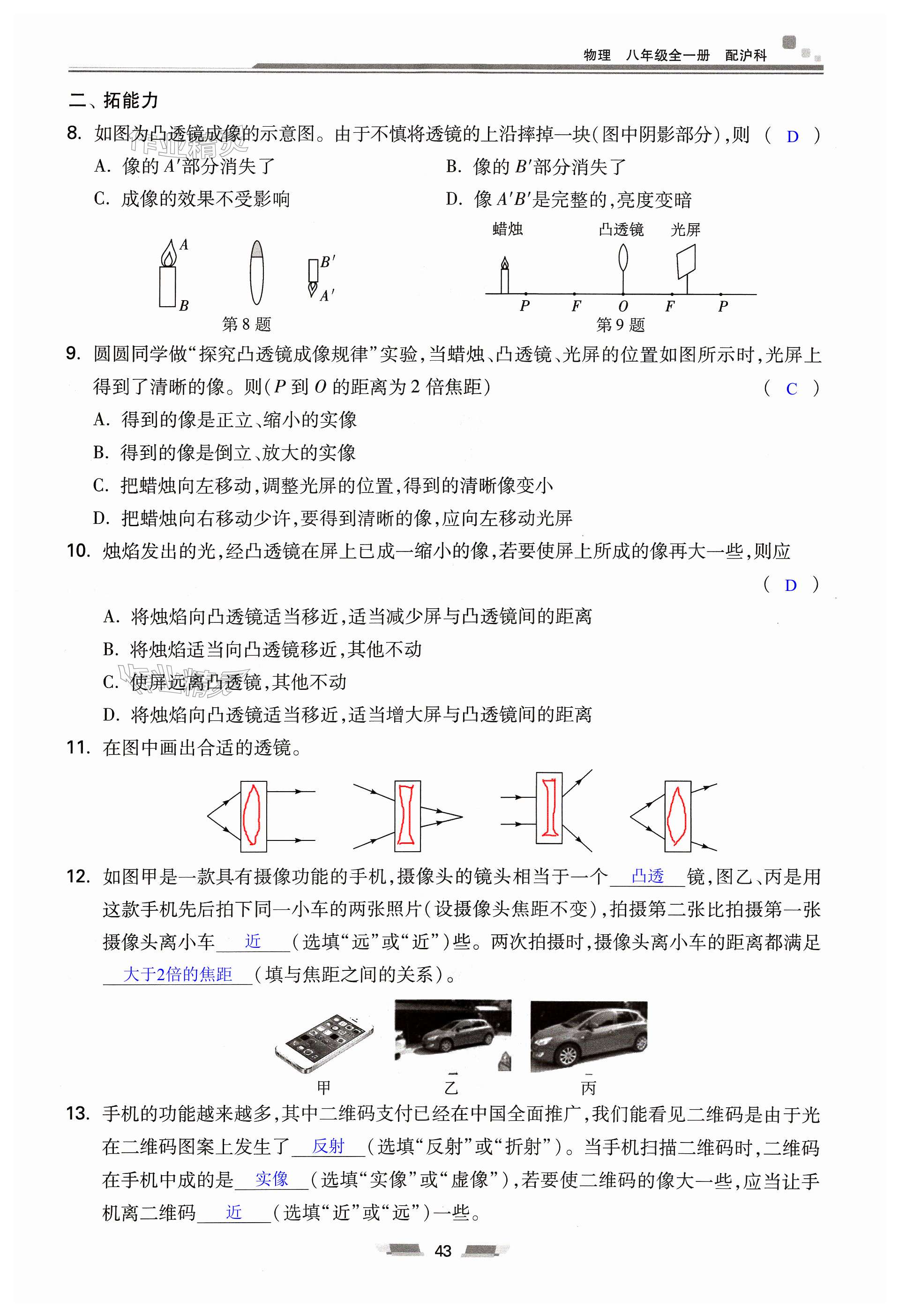 注:目前有些书本章节名称可能整理的还不是很完善,但都是按照顺序排列的,请同学们按照顺序仔细查找。练习册 2023年初中同步练习册八年级物理全一册沪科版湖南少年儿童出版社 答案主要是用来给同学们做完题方便对答案用的,请勿直接抄袭。