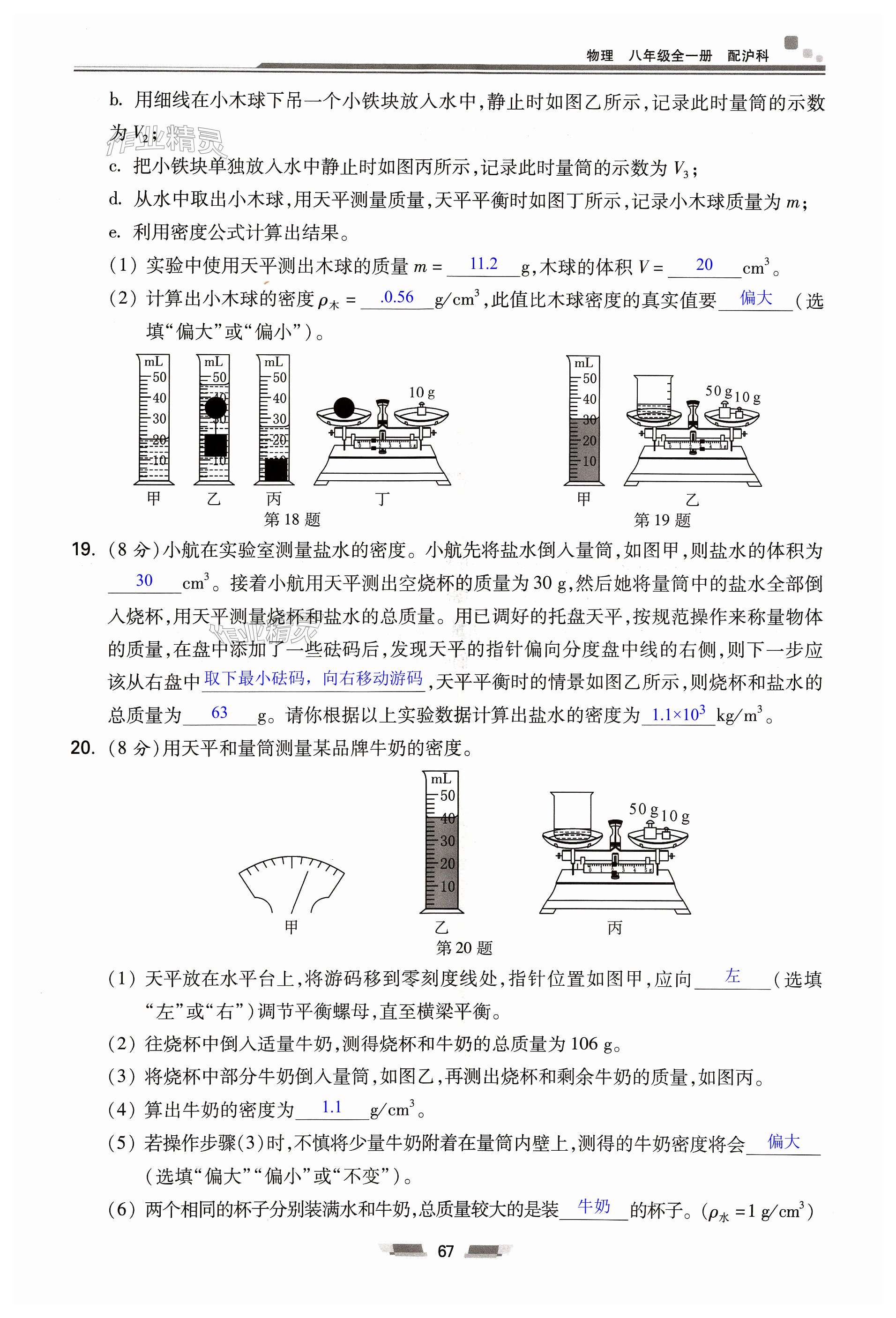注:目前有些书本章节名称可能整理的还不是很完善,但都是按照顺序排列的,请同学们按照顺序仔细查找。练习册 2023年初中同步练习册八年级物理全一册沪科版湖南少年儿童出版社 答案主要是用来给同学们做完题方便对答案用的,请勿直接抄袭。