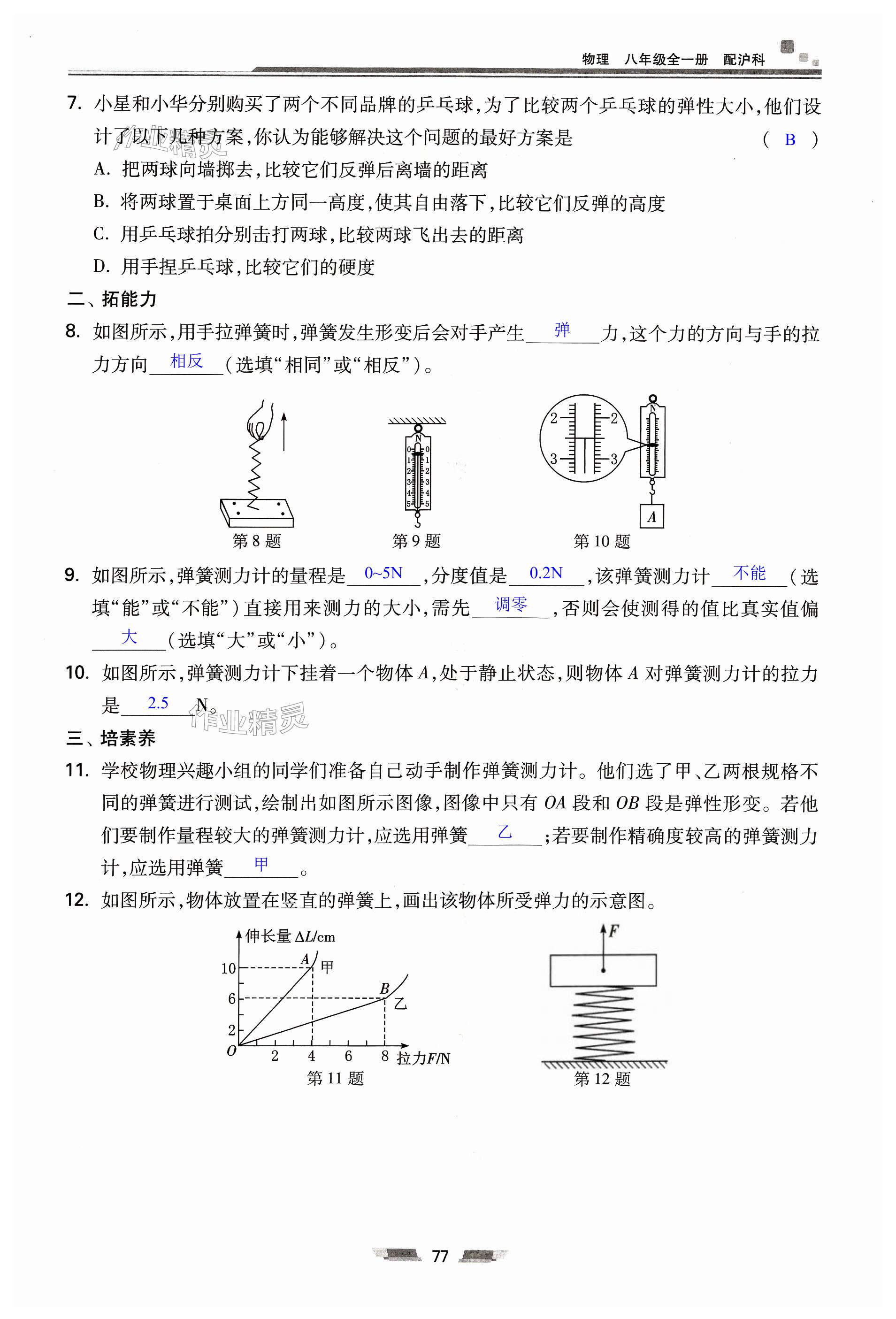 注:目前有些书本章节名称可能整理的还不是很完善,但都是按照顺序排列的,请同学们按照顺序仔细查找。练习册 2023年初中同步练习册八年级物理全一册沪科版湖南少年儿童出版社 答案主要是用来给同学们做完题方便对答案用的,请勿直接抄袭。