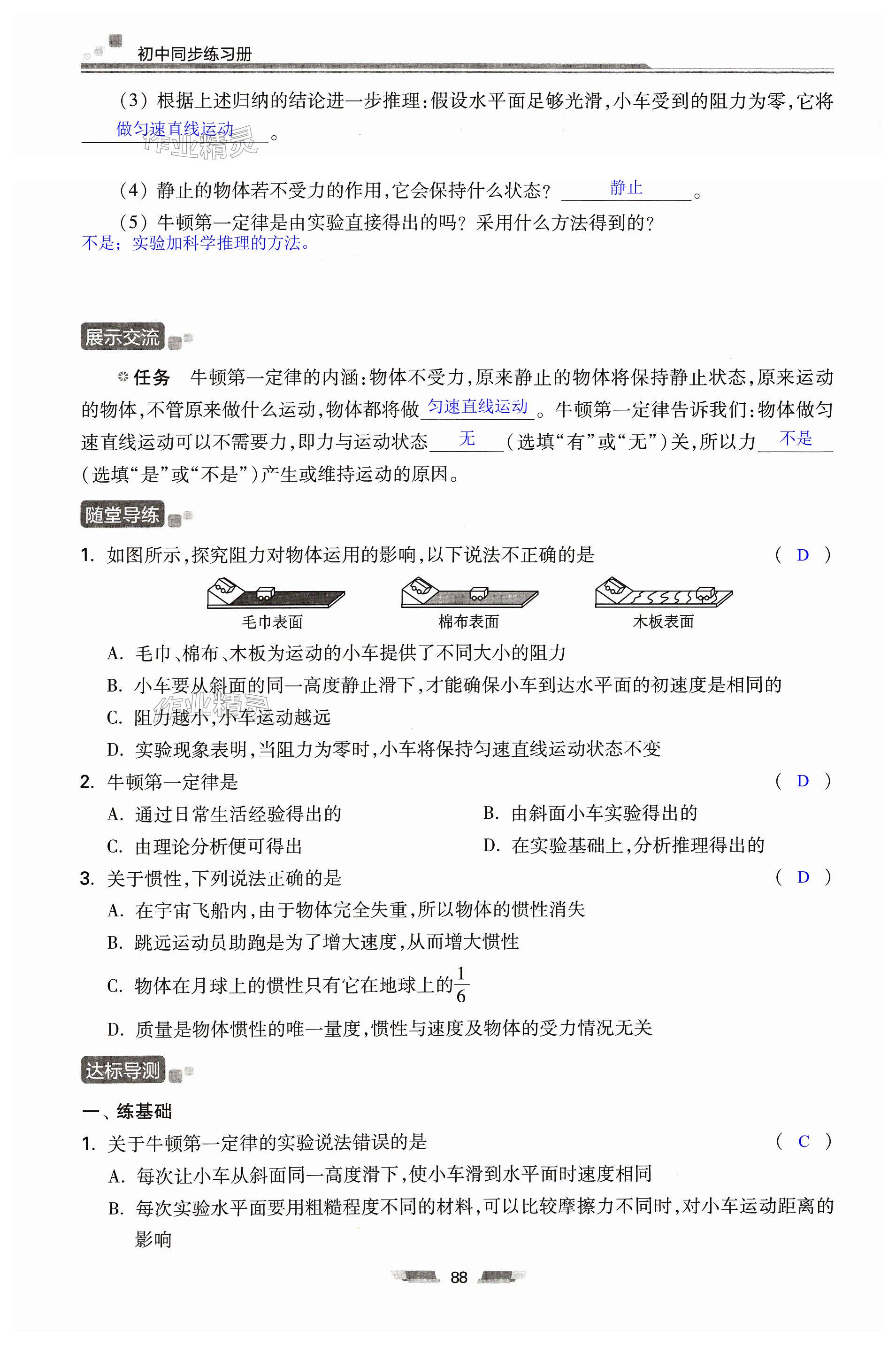 注:目前有些书本章节名称可能整理的还不是很完善,但都是按照顺序排列的,请同学们按照顺序仔细查找。练习册 2023年初中同步练习册八年级物理全一册沪科版湖南少年儿童出版社 答案主要是用来给同学们做完题方便对答案用的,请勿直接抄袭。