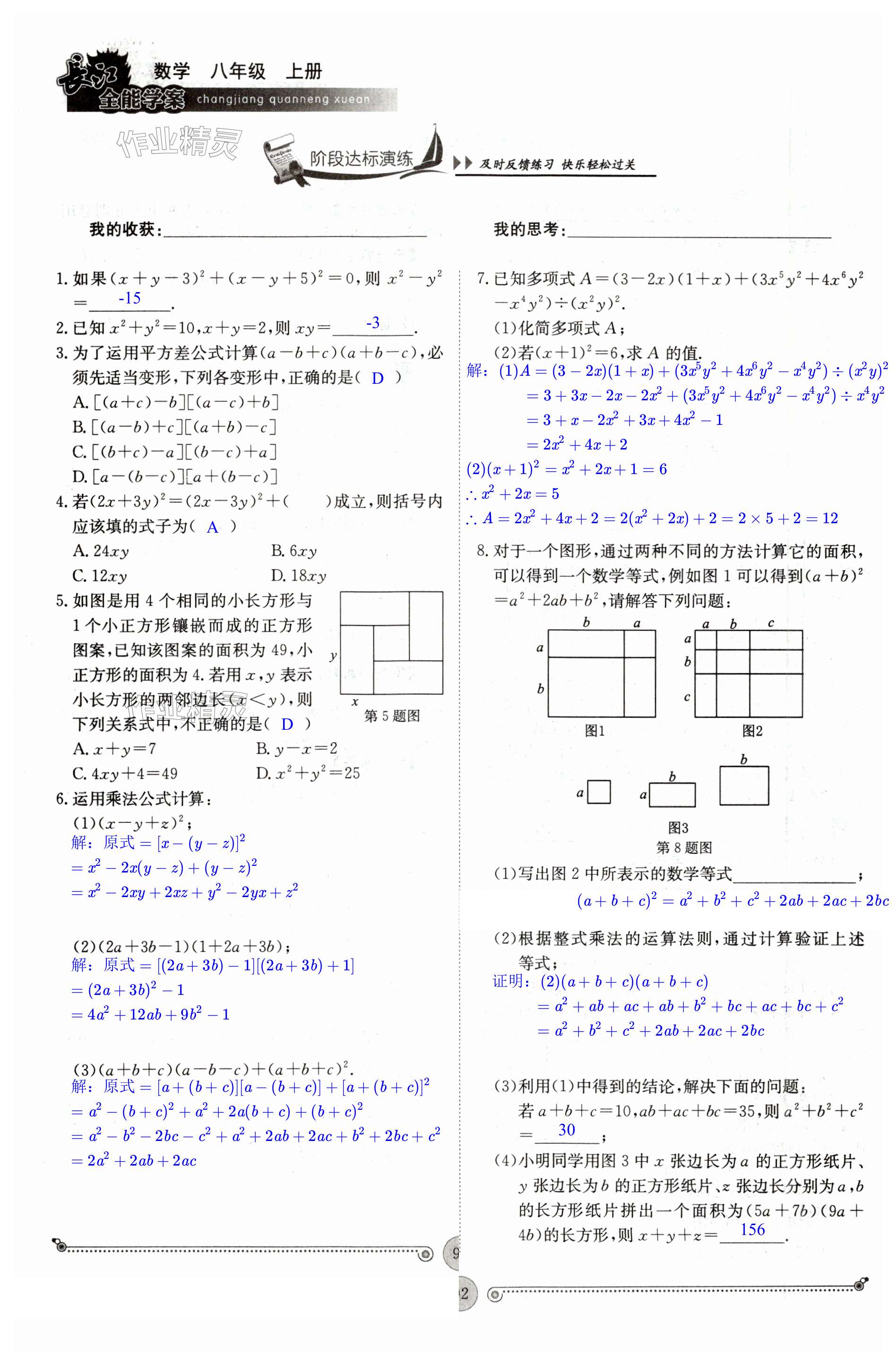 注:目前有些书本章节名称可能整理的还不是很完善,但都是按照顺序排列的,请同学们按照顺序仔细查找。练习册 2023年长江全能学案同步练习册八年级数学上册人教版 答案主要是用来给同学们做完题方便对答案用的,请勿直接抄袭。