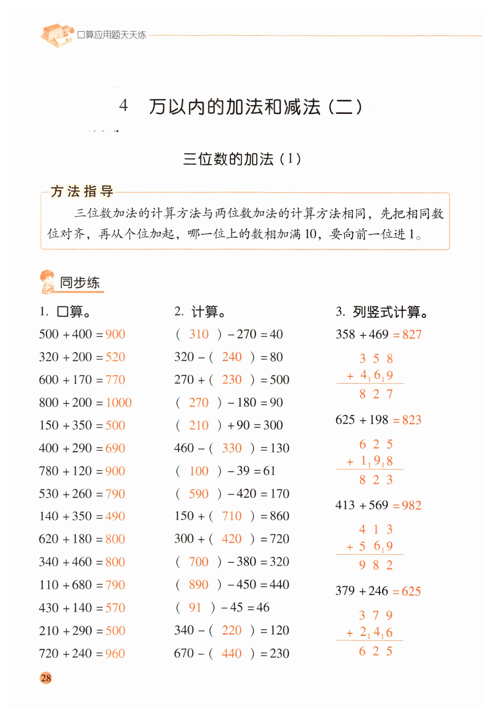 注:目前有些书本章节名称可能整理的还不是很完善,但都是按照顺序排列的,请同学们按照顺序仔细查找。练习册 2023年晨光全优口算应用题天天练三年级数学上册人教版 答案主要是用来给同学们做完题方便对答案用的,请勿直接抄袭。
