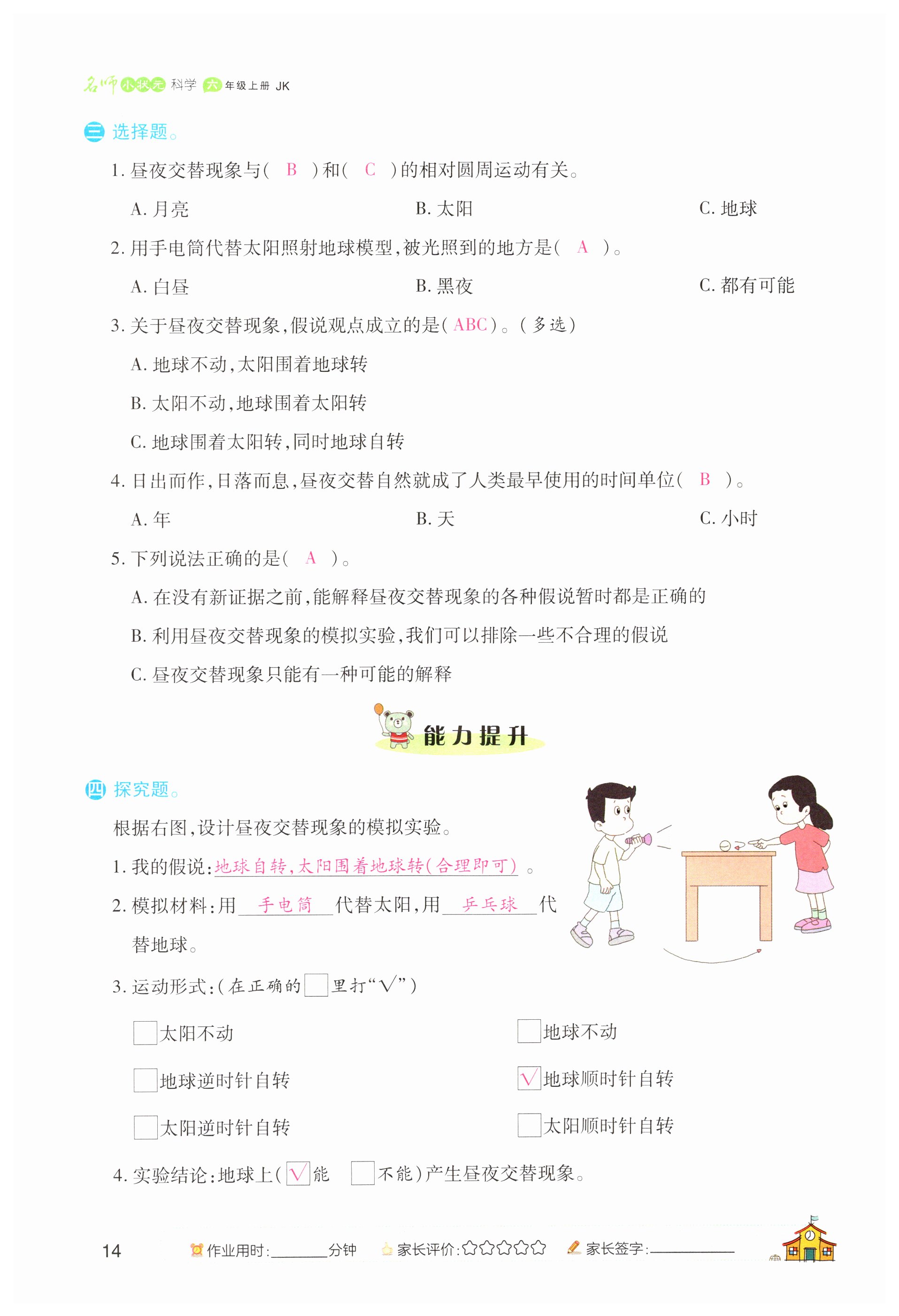 注:目前有些书本章节名称可能整理的还不是很完善,但都是按照顺序排列的,请同学们按照顺序仔细查找。练习册 2023年名师小状元课时作业本六年级科学上册教科版 答案主要是用来给同学们做完题方便对答案用的,请勿直接抄袭。
