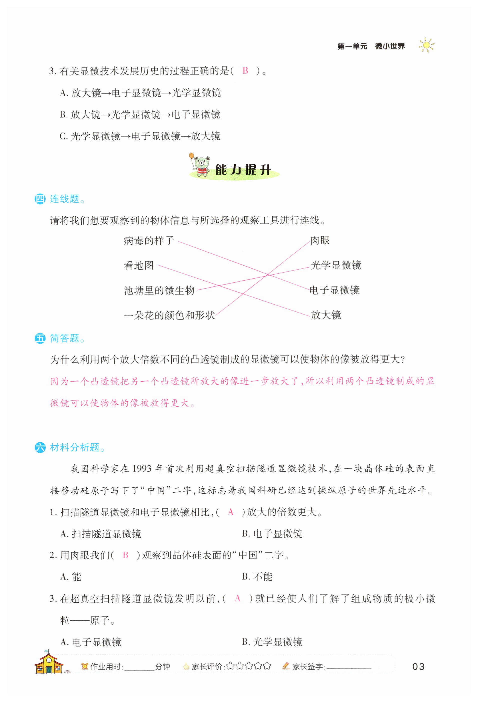 注:目前有些书本章节名称可能整理的还不是很完善,但都是按照顺序排列的,请同学们按照顺序仔细查找。练习册 2023年名师小状元课时作业本六年级科学上册教科版 答案主要是用来给同学们做完题方便对答案用的,请勿直接抄袭。