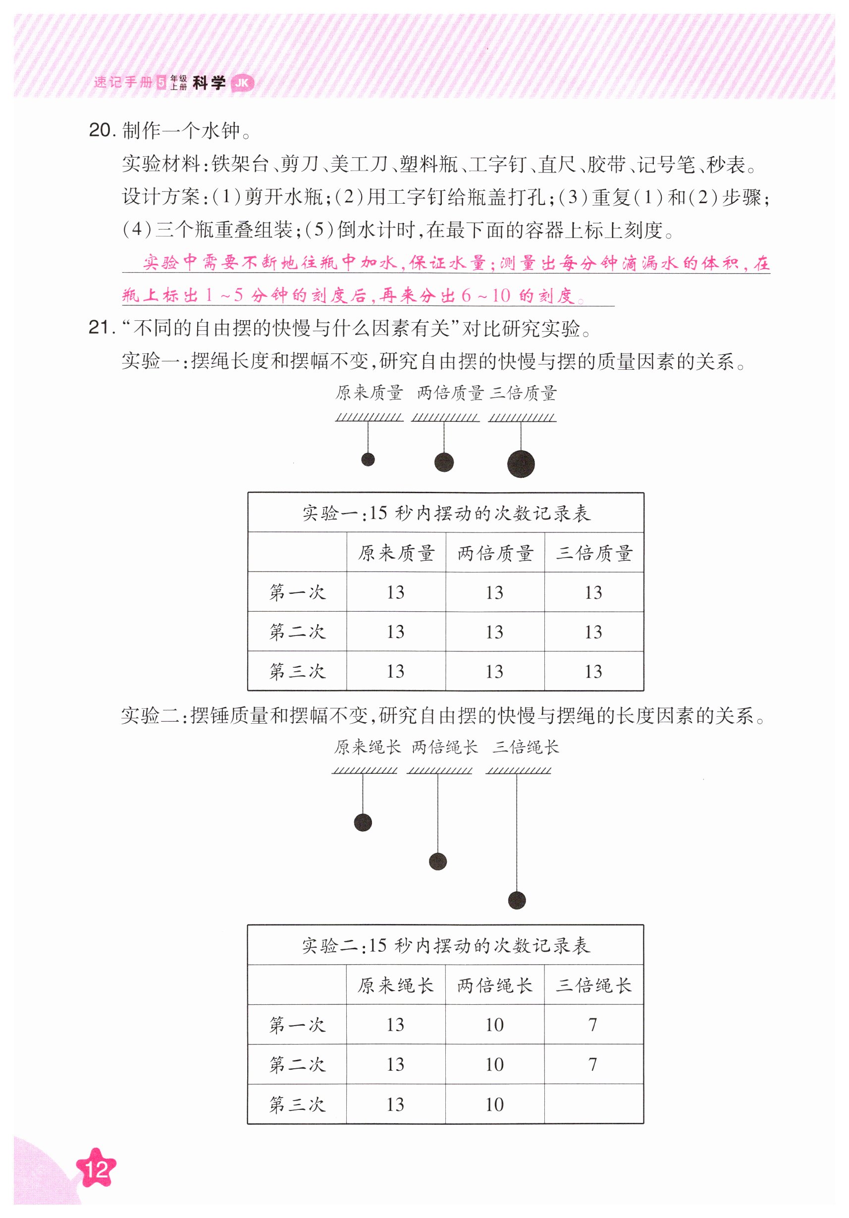 《2023年名师小状元课时作业本五年级科学上册教科版》