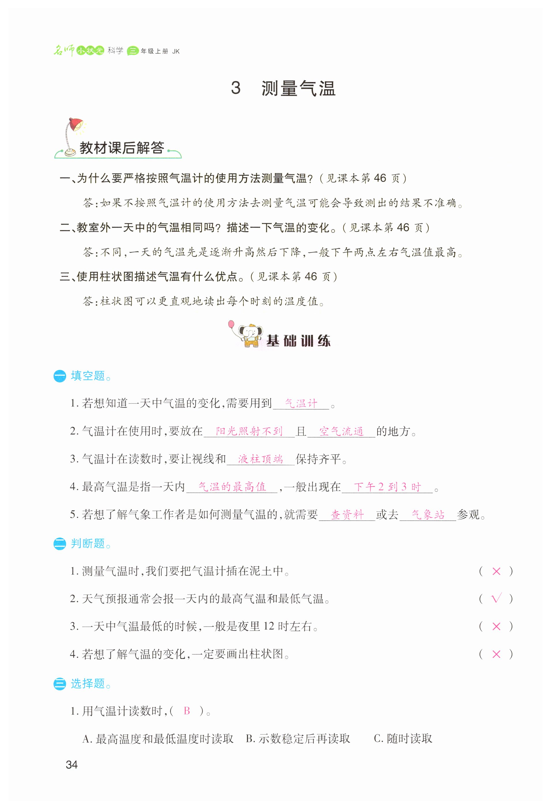 注:目前有些书本章节名称可能整理的还不是很完善,但都是按照顺序排列的,请同学们按照顺序仔细查找。练习册 2023年名师小状元课时作业本三年级科学上册教科版 答案主要是用来给同学们做完题方便对答案用的,请勿直接抄袭。