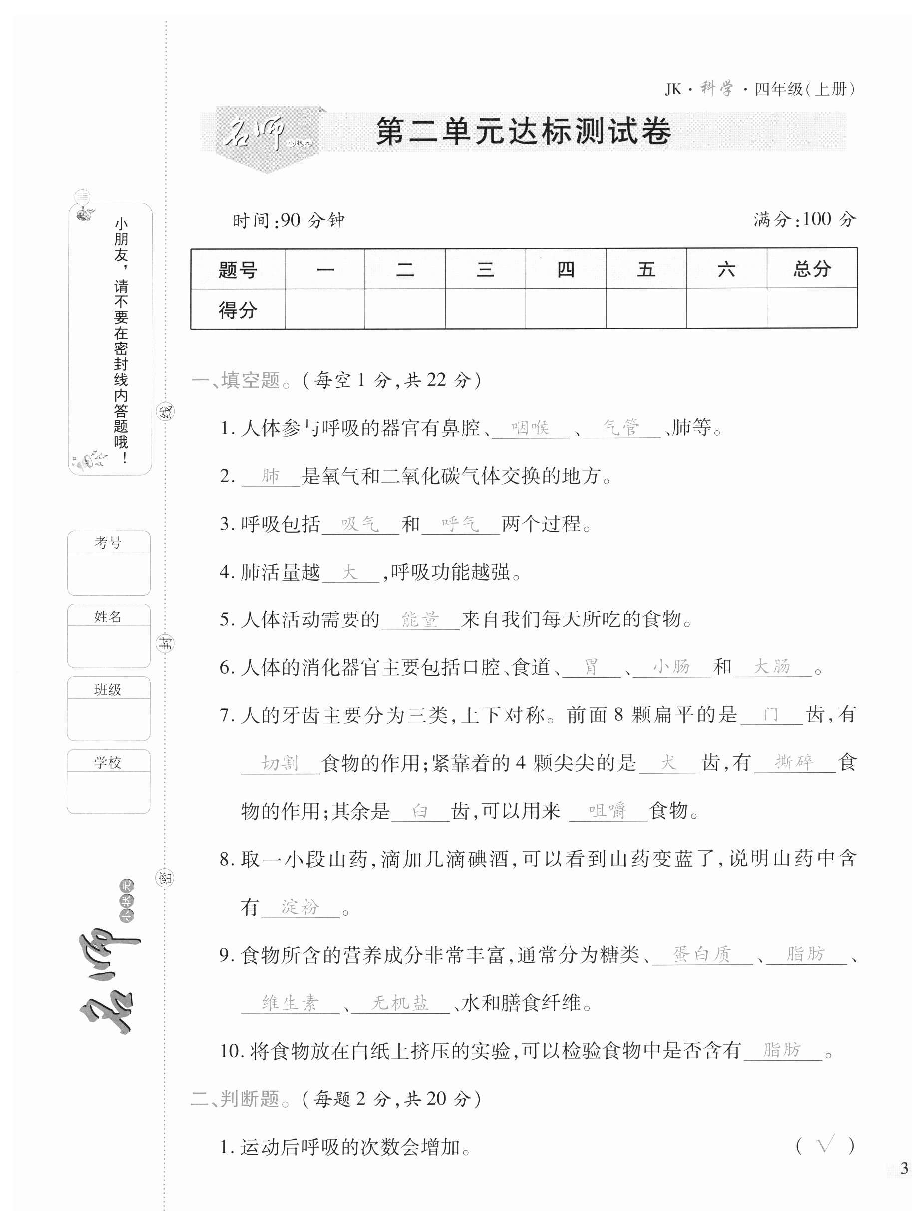 注:目前有些书本章节名称可能整理的还不是很完善,但都是按照顺序排列的,请同学们按照顺序仔细查找。练习册 2023年名师小状元课时作业本四年级科学上册教科版 答案主要是用来给同学们做完题方便对答案用的,请勿直接抄袭。
