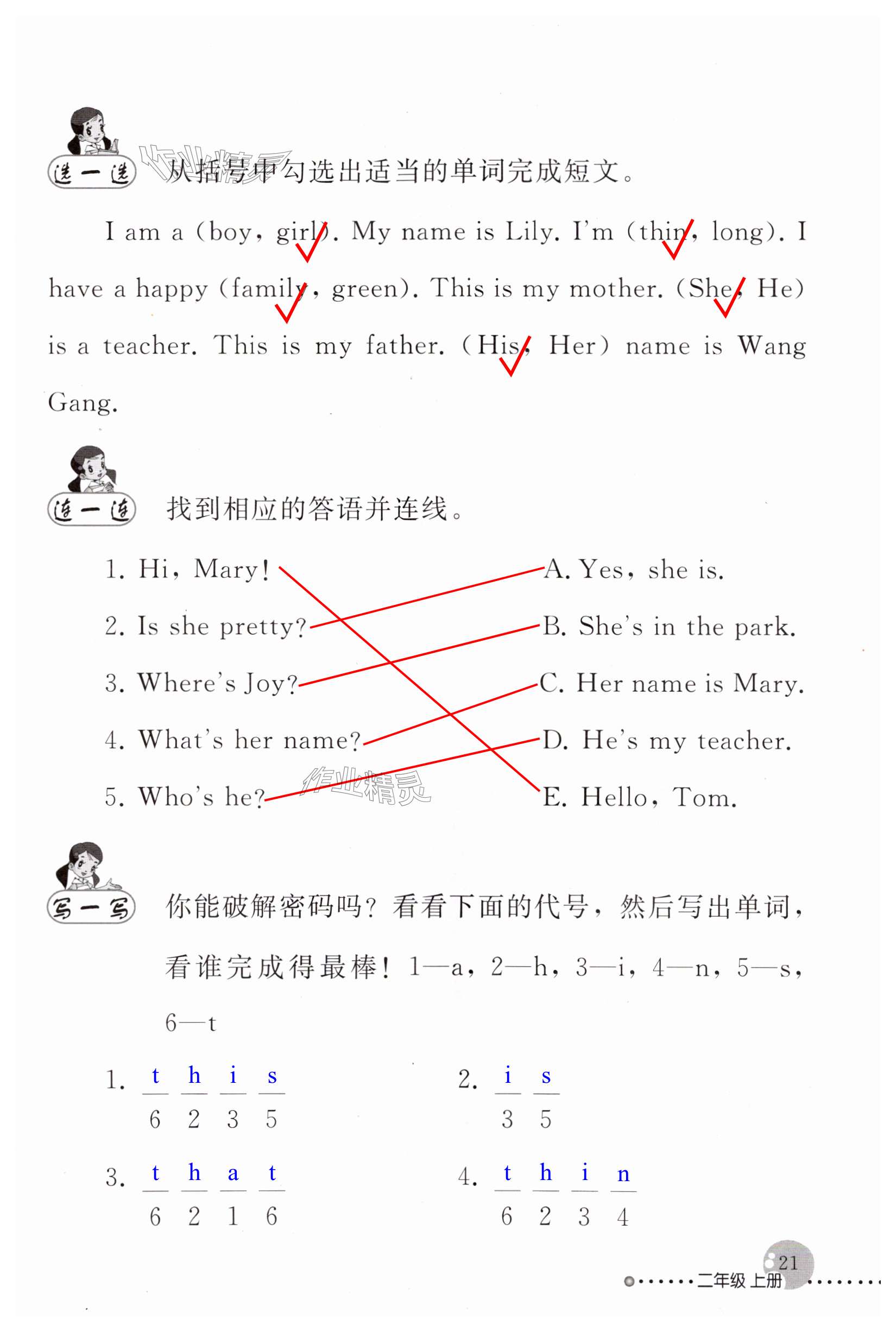 注:目前有些书本章节名称可能整理的还不是很完善,但都是按照顺序排列的,请同学们按照顺序仔细查找。练习册 2023年英语配套练习与检测二年级上册人教新起点 答案主要是用来给同学们做完题方便对答案用的,请勿直接抄袭。