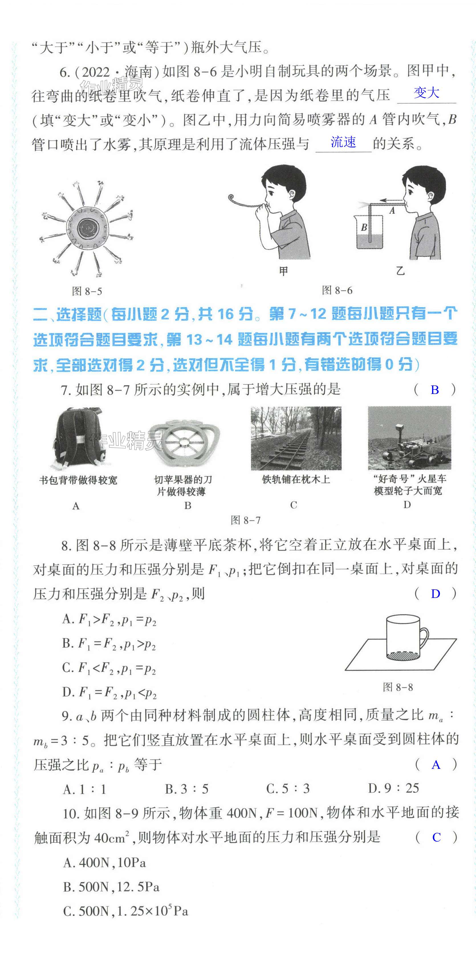 注:目前有些书本章节名称可能整理的还不是很完善,但都是按照顺序排列的,请同学们按照顺序仔细查找。练习册 2023年基础训练八年级物理全一册沪科版大象出版社 答案主要是用来给同学们做完题方便对答案用的,请勿直接抄袭。