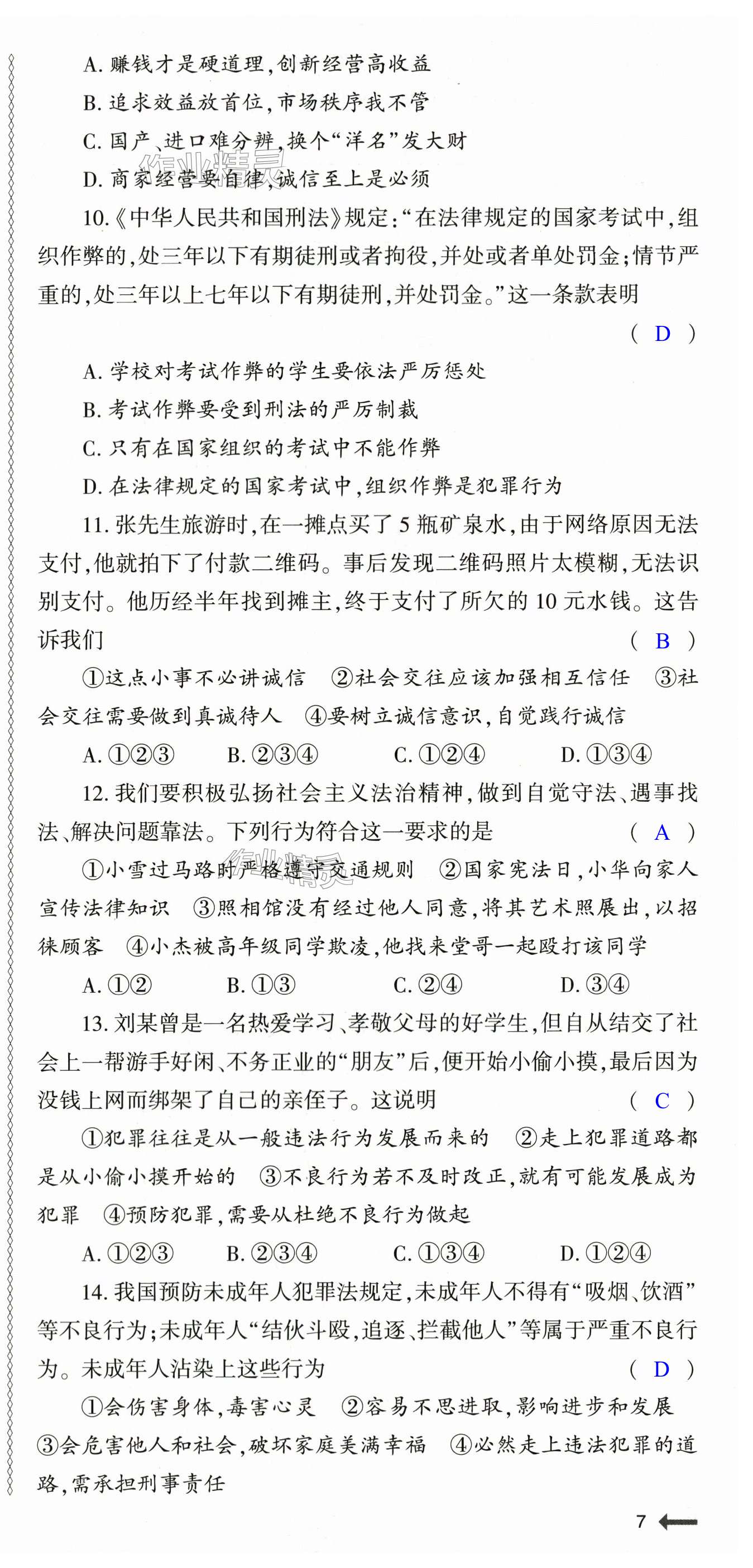 注:目前有些书本章节名称可能整理的还不是很完善,但都是按照顺序排列的,请同学们按照顺序仔细查找。练习册 2023年节节高大象出版社八年级道德与法治上册人教版 答案主要是用来给同学们做完题方便对答案用的,请勿直接抄袭。