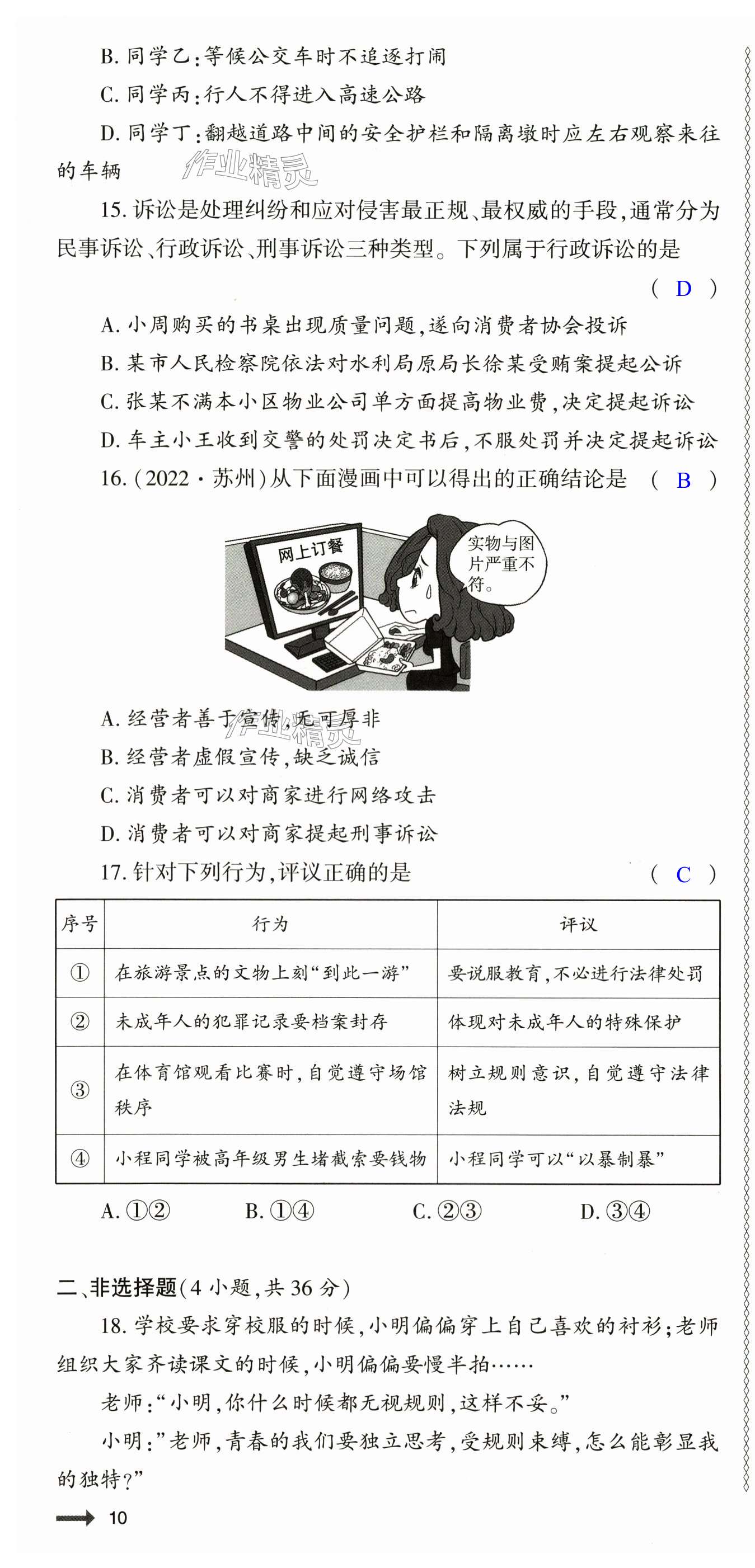 注:目前有些书本章节名称可能整理的还不是很完善,但都是按照顺序排列的,请同学们按照顺序仔细查找。练习册 2023年节节高大象出版社八年级道德与法治上册人教版 答案主要是用来给同学们做完题方便对答案用的,请勿直接抄袭。