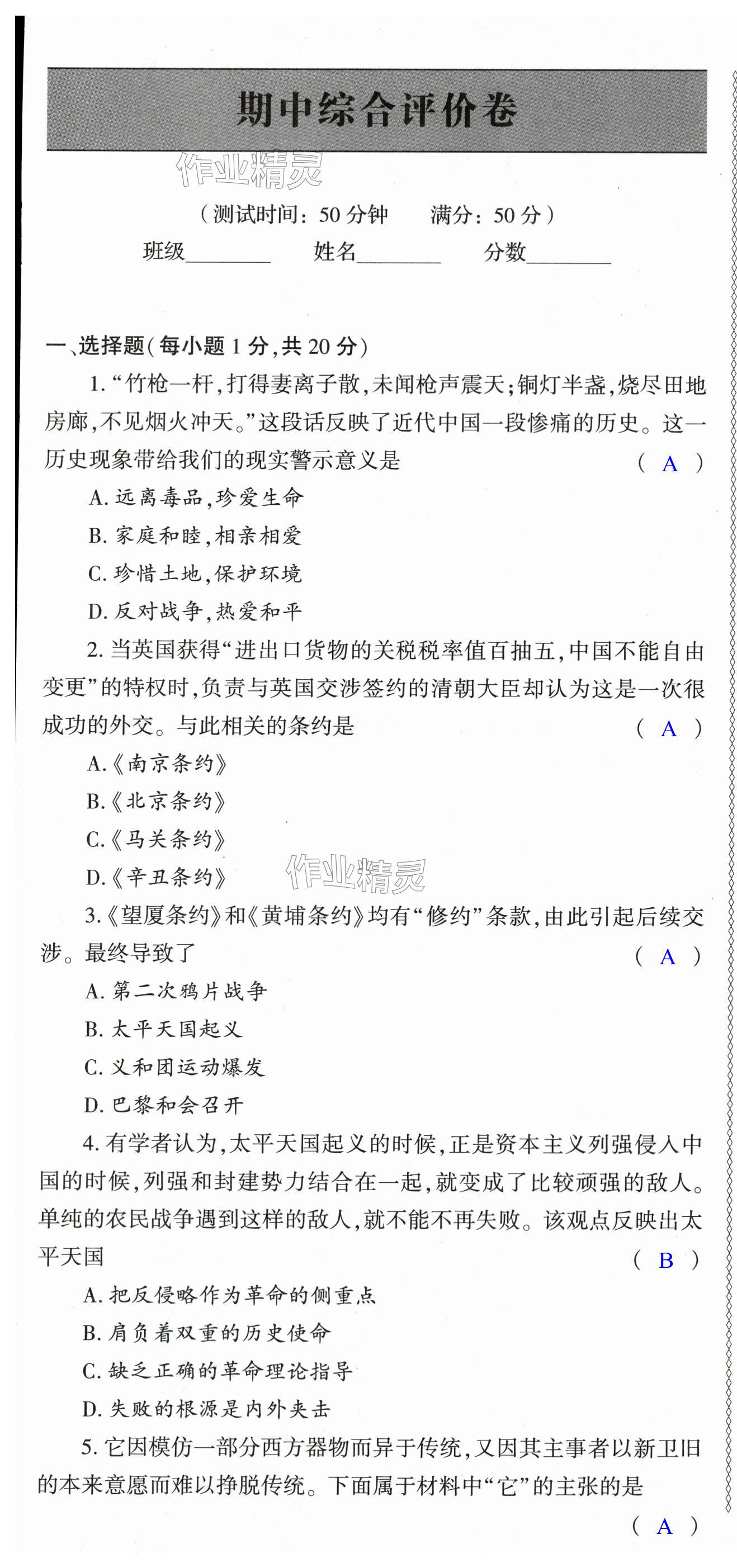 注:目前有些书本章节名称可能整理的还不是很完善,但都是按照顺序排列的,请同学们按照顺序仔细查找。练习册 2023年节节高大象出版社八年级历史上册人教版 答案主要是用来给同学们做完题方便对答案用的,请勿直接抄袭。