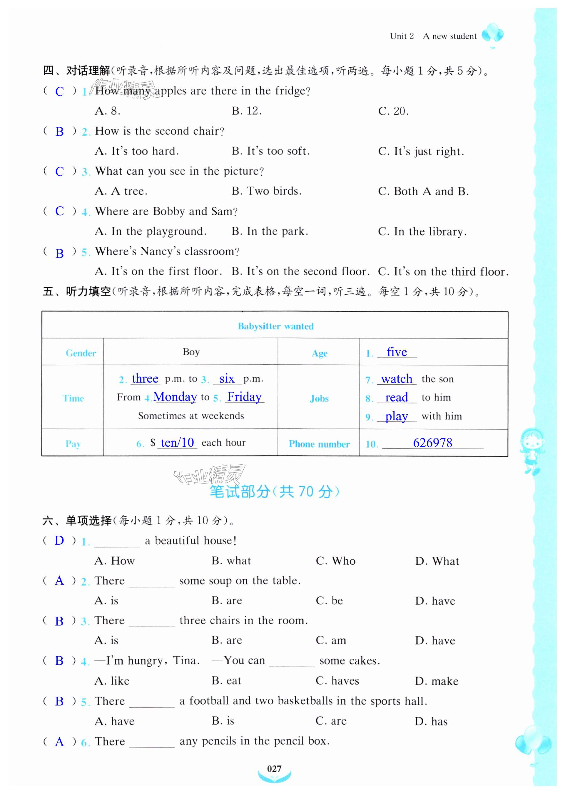 注:目前有些书本章节名称可能整理的还不是很完善,但都是按照顺序排列的,请同学们按照顺序仔细查找。练习册 2023年课后服务综合学习能力提升指南五年级英语上册译林版 答案主要是用来给同学们做完题方便对答案用的,请勿直接抄袭。