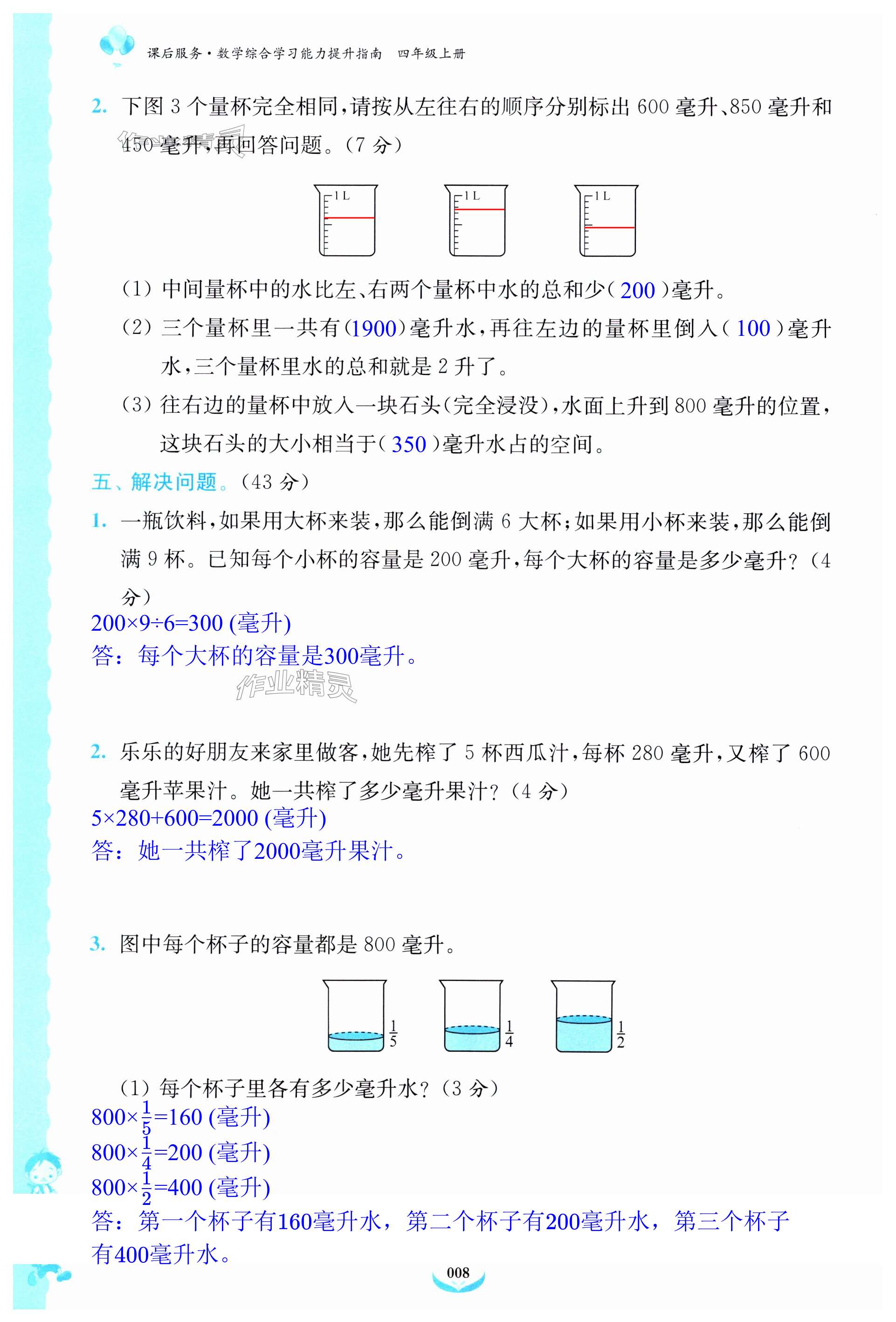 注:目前有些书本章节名称可能整理的还不是很完善,但都是按照顺序排列的,请同学们按照顺序仔细查找。练习册 2023年课后服务综合学习能力提升指南四年级数学上册苏教版 答案主要是用来给同学们做完题方便对答案用的,请勿直接抄袭。