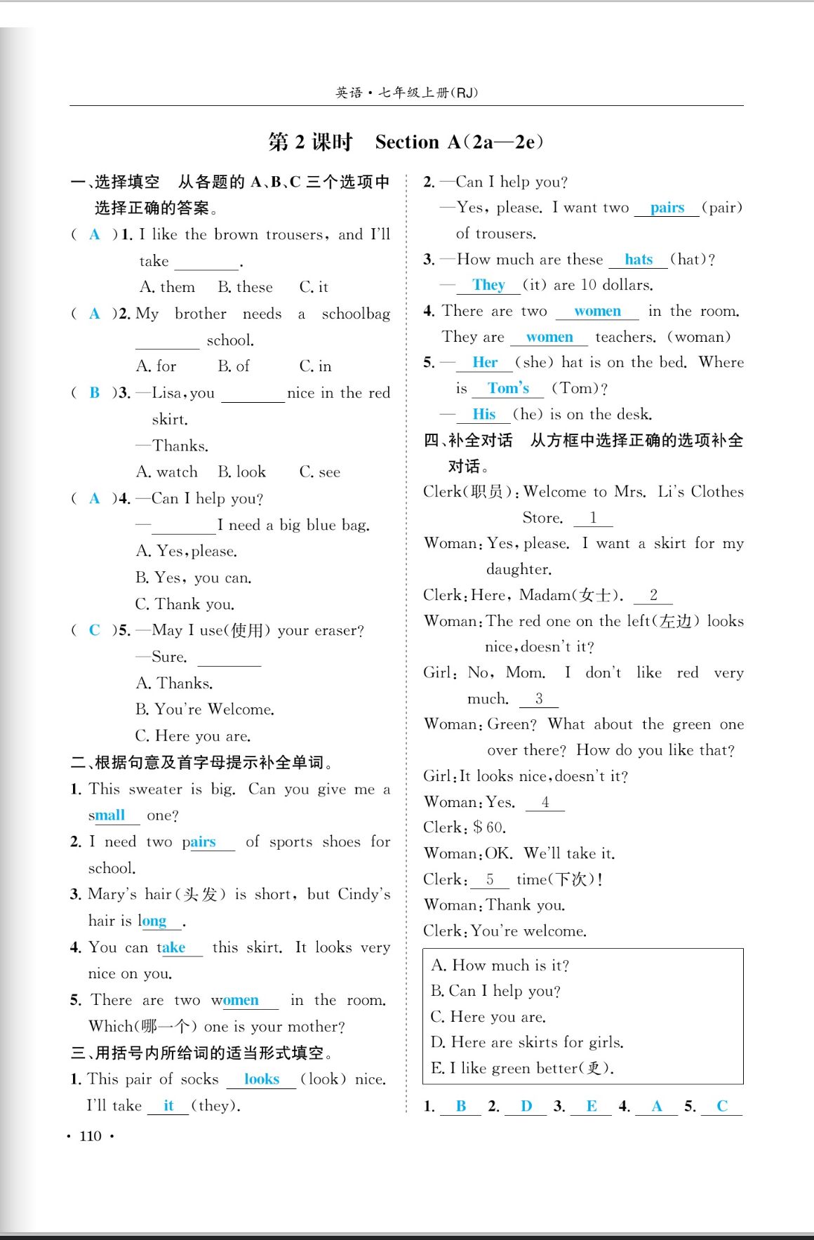 注:目前有些书本章节名称可能整理的还不是很完善,但都是按照顺序排列的,请同学们按照顺序仔细查找。练习册 2023年蓉城学霸七年级英语上册人教版成都专版 答案主要是用来给同学们做完题方便对答案用的,请勿直接抄袭。