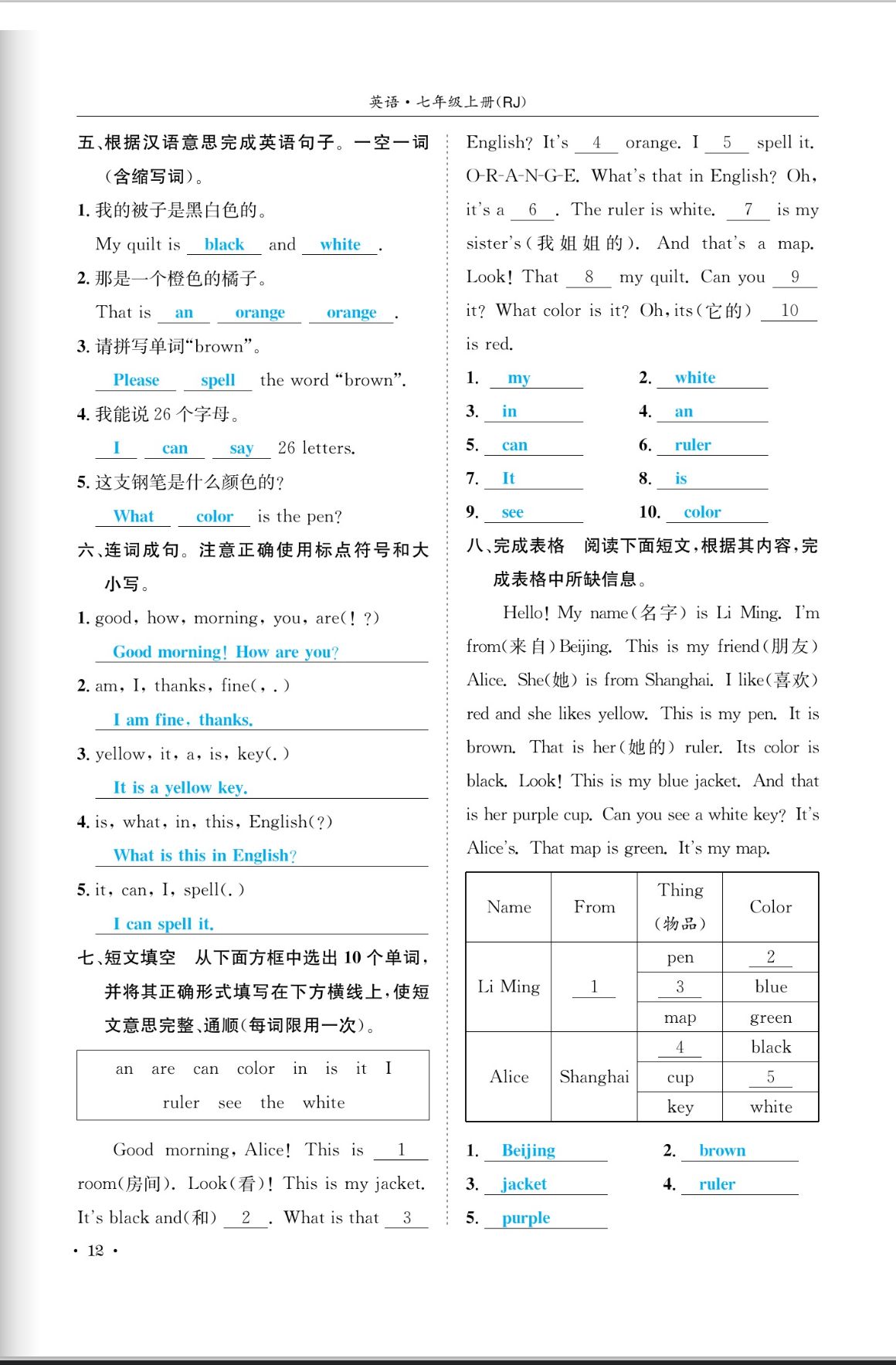 注:目前有些书本章节名称可能整理的还不是很完善,但都是按照顺序排列的,请同学们按照顺序仔细查找。练习册 2023年蓉城学霸七年级英语上册人教版成都专版 答案主要是用来给同学们做完题方便对答案用的,请勿直接抄袭。