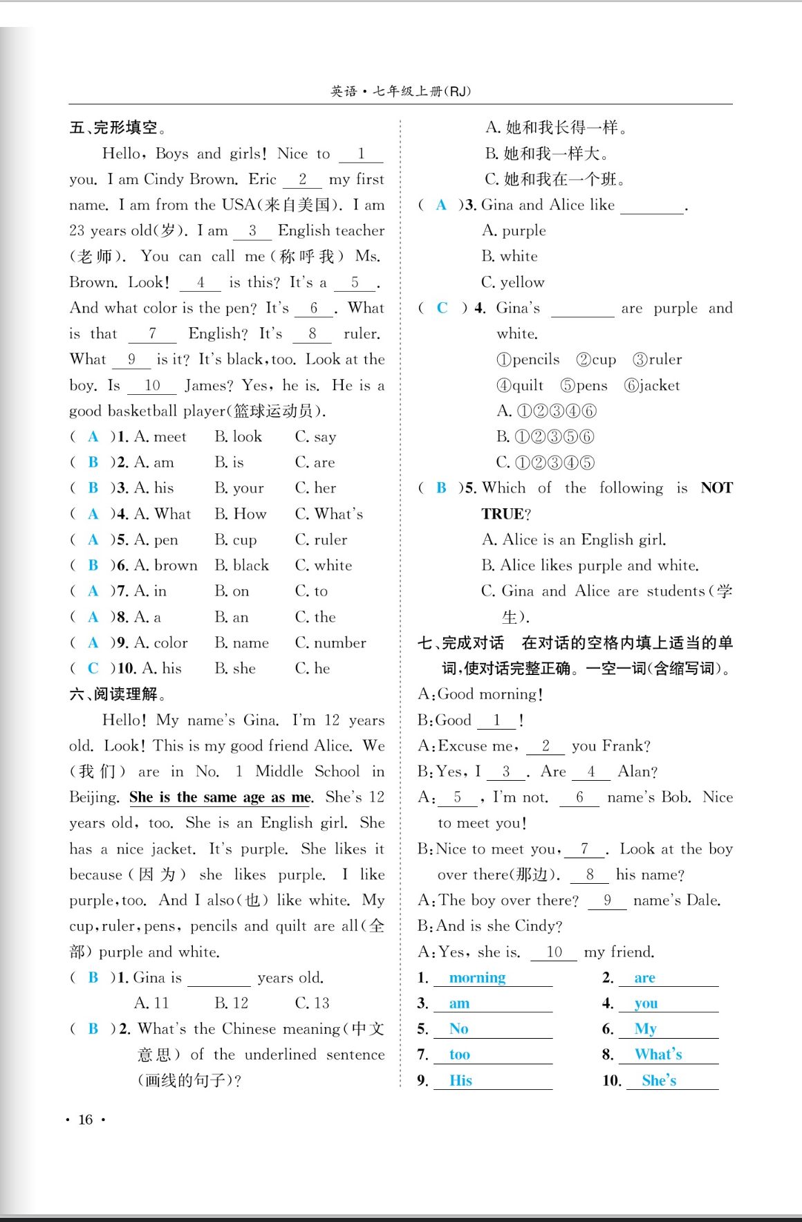 注:目前有些书本章节名称可能整理的还不是很完善,但都是按照顺序排列的,请同学们按照顺序仔细查找。练习册 2023年蓉城学霸七年级英语上册人教版成都专版 答案主要是用来给同学们做完题方便对答案用的,请勿直接抄袭。
