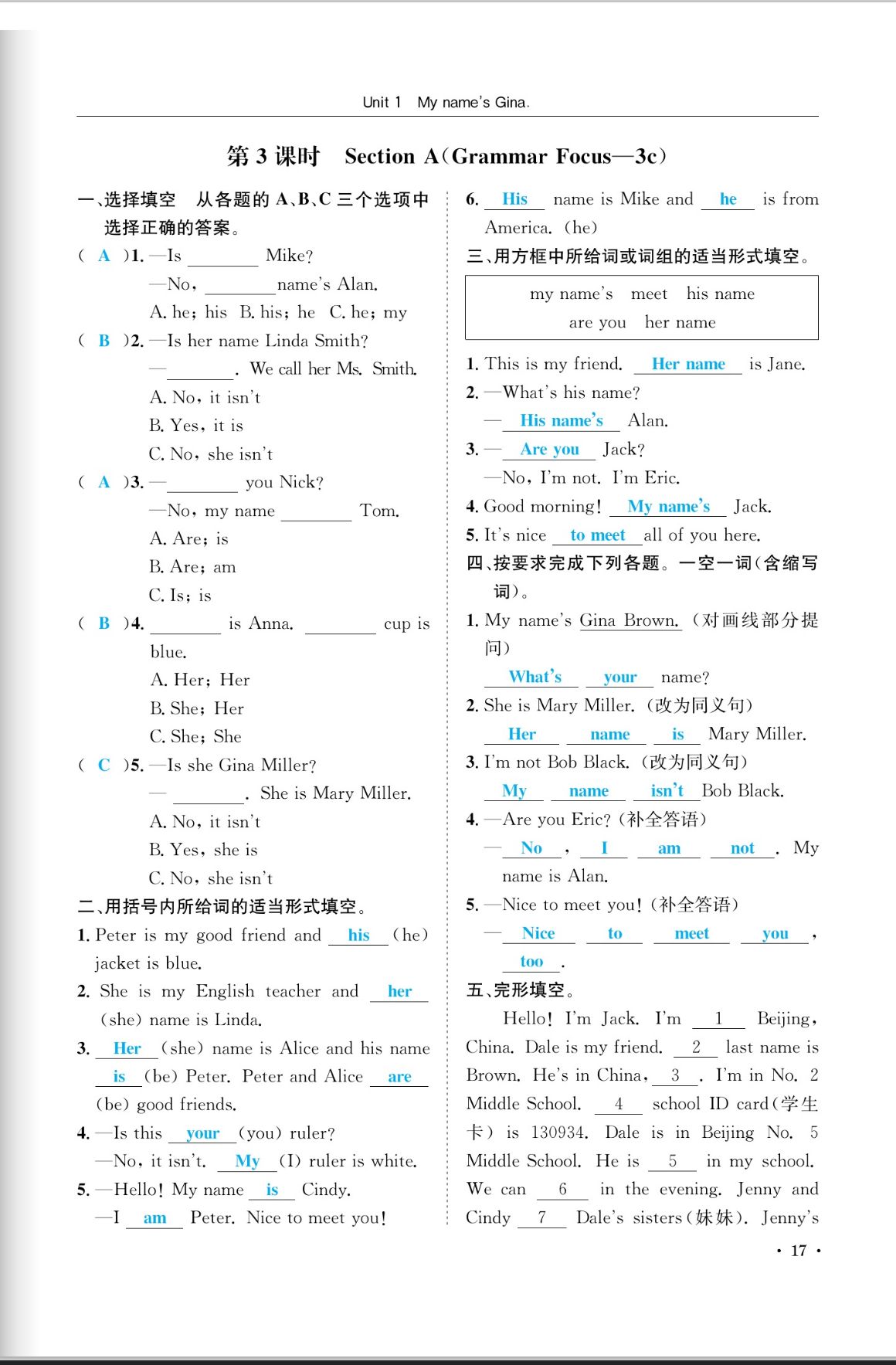 注:目前有些书本章节名称可能整理的还不是很完善,但都是按照顺序排列的,请同学们按照顺序仔细查找。练习册 2023年蓉城学霸七年级英语上册人教版成都专版 答案主要是用来给同学们做完题方便对答案用的,请勿直接抄袭。