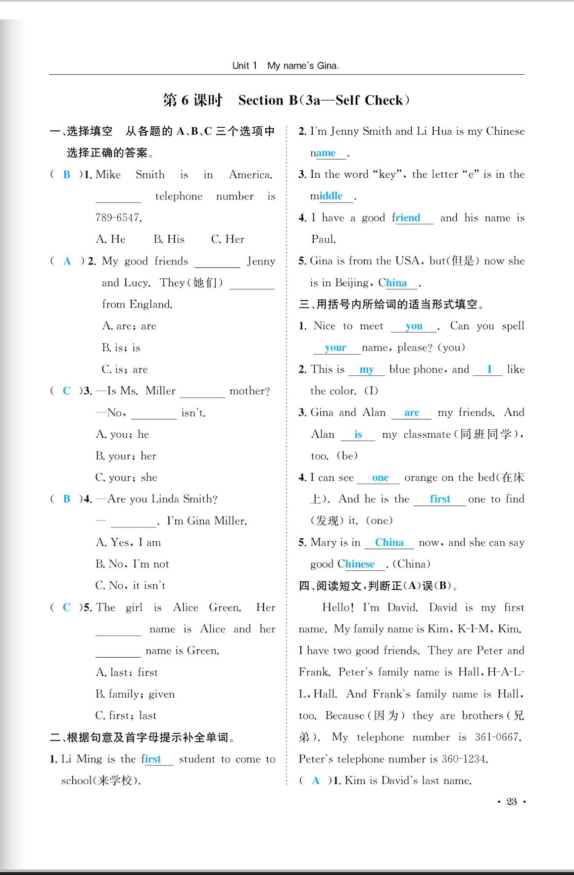 注:目前有些书本章节名称可能整理的还不是很完善,但都是按照顺序排列的,请同学们按照顺序仔细查找。练习册 2023年蓉城学霸七年级英语上册人教版成都专版 答案主要是用来给同学们做完题方便对答案用的,请勿直接抄袭。