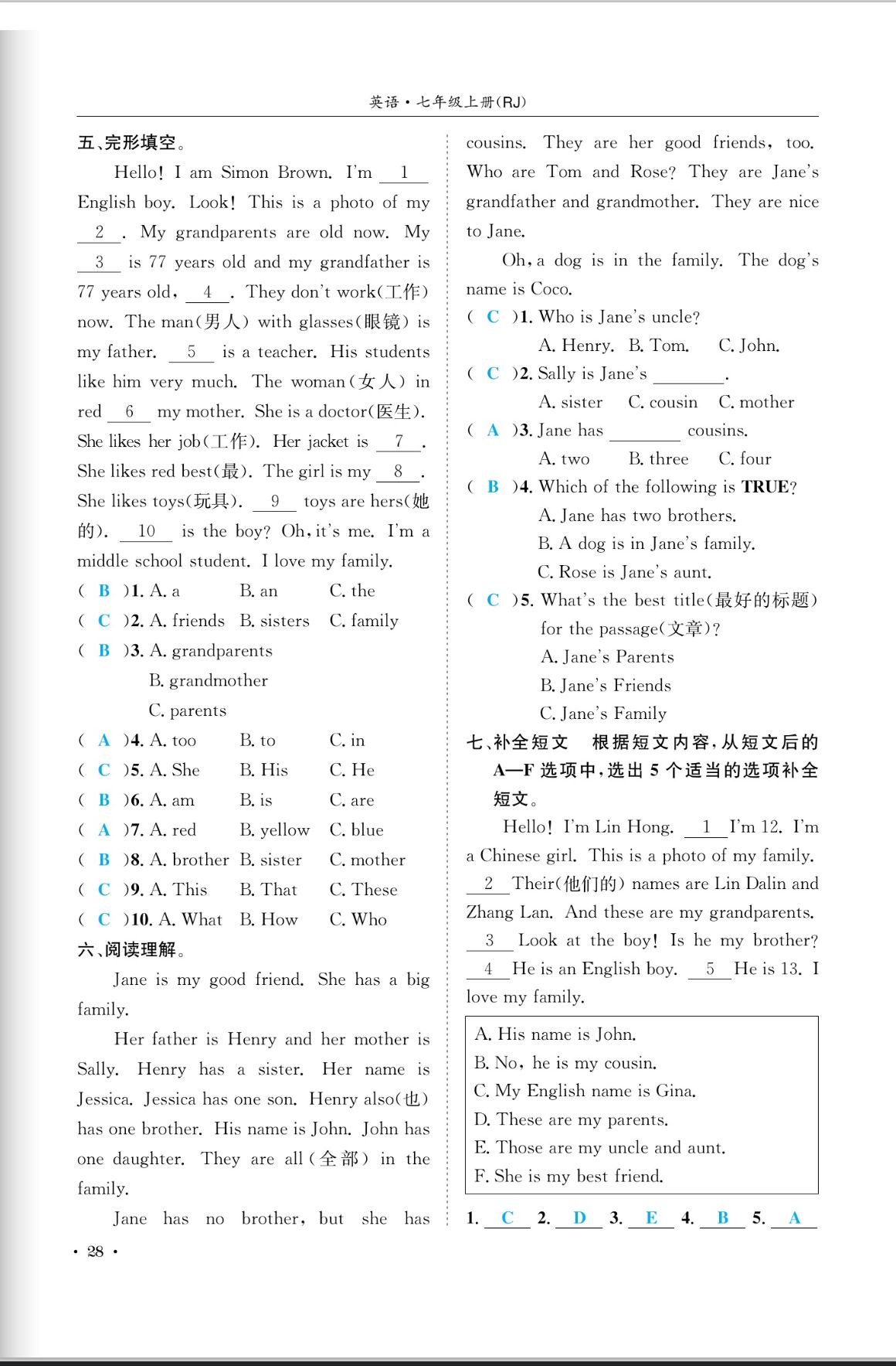 注:目前有些书本章节名称可能整理的还不是很完善,但都是按照顺序排列的,请同学们按照顺序仔细查找。练习册 2023年蓉城学霸七年级英语上册人教版成都专版 答案主要是用来给同学们做完题方便对答案用的,请勿直接抄袭。