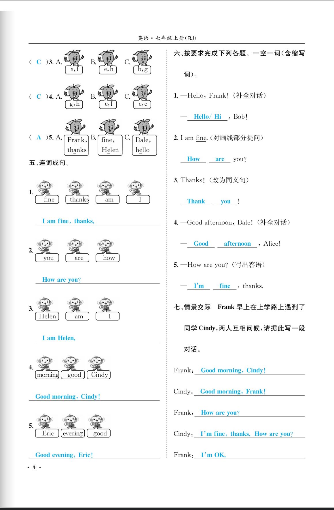 注:目前有些书本章节名称可能整理的还不是很完善,但都是按照顺序排列的,请同学们按照顺序仔细查找。练习册 2023年蓉城学霸七年级英语上册人教版成都专版 答案主要是用来给同学们做完题方便对答案用的,请勿直接抄袭。