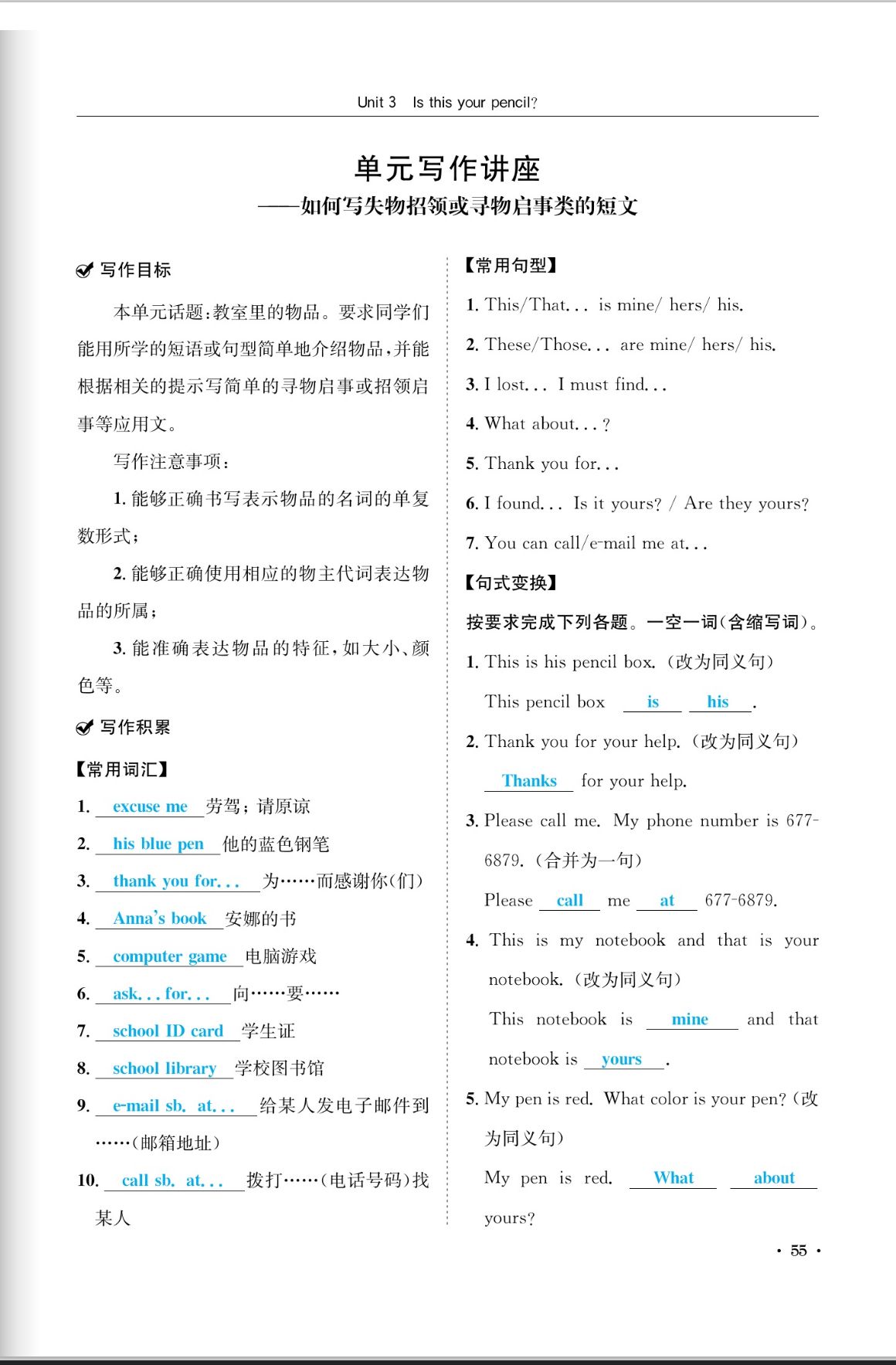 注:目前有些书本章节名称可能整理的还不是很完善,但都是按照顺序排列的,请同学们按照顺序仔细查找。练习册 2023年蓉城学霸七年级英语上册人教版成都专版 答案主要是用来给同学们做完题方便对答案用的,请勿直接抄袭。