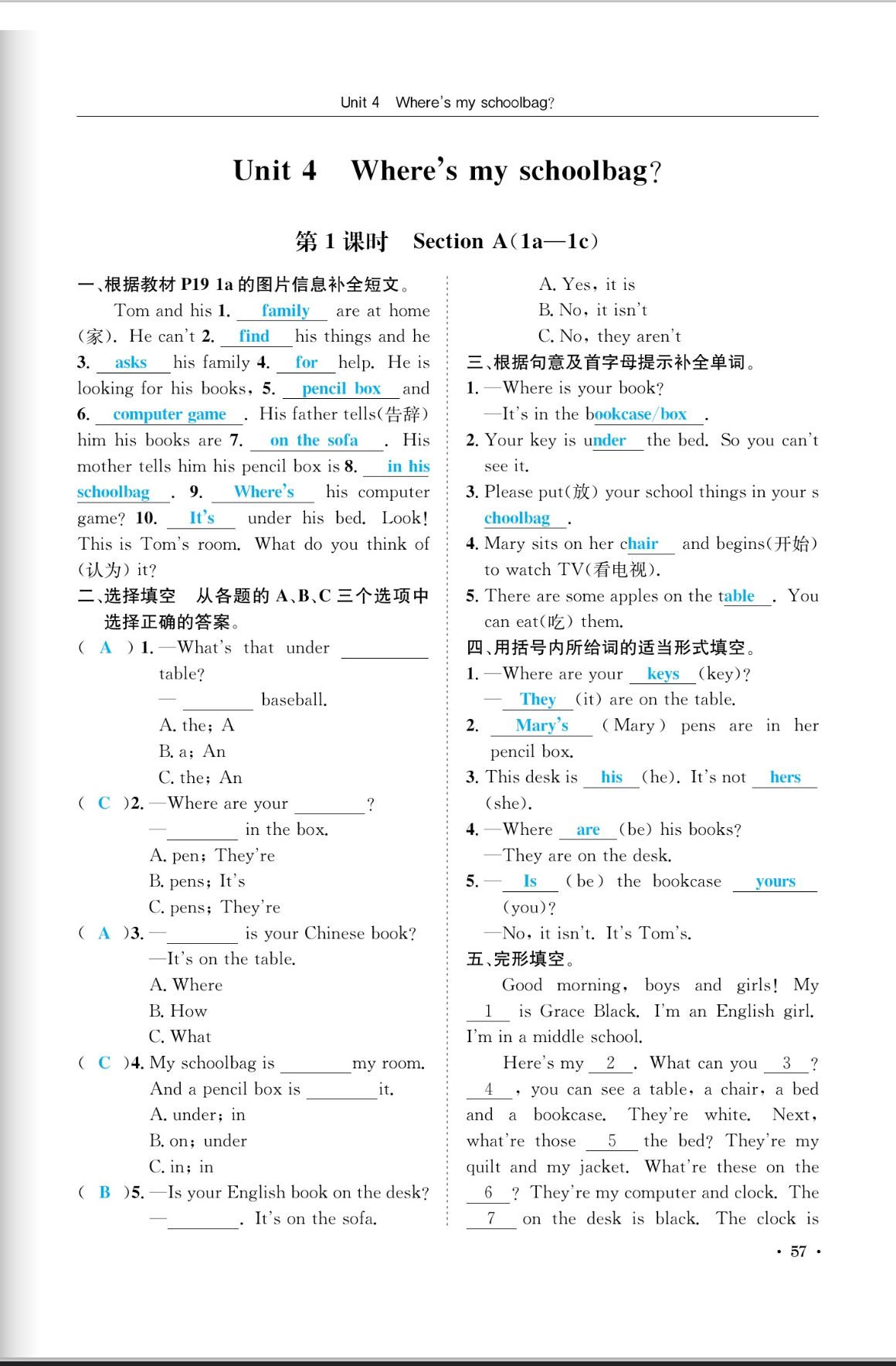 注:目前有些书本章节名称可能整理的还不是很完善,但都是按照顺序排列的,请同学们按照顺序仔细查找。练习册 2023年蓉城学霸七年级英语上册人教版成都专版 答案主要是用来给同学们做完题方便对答案用的,请勿直接抄袭。